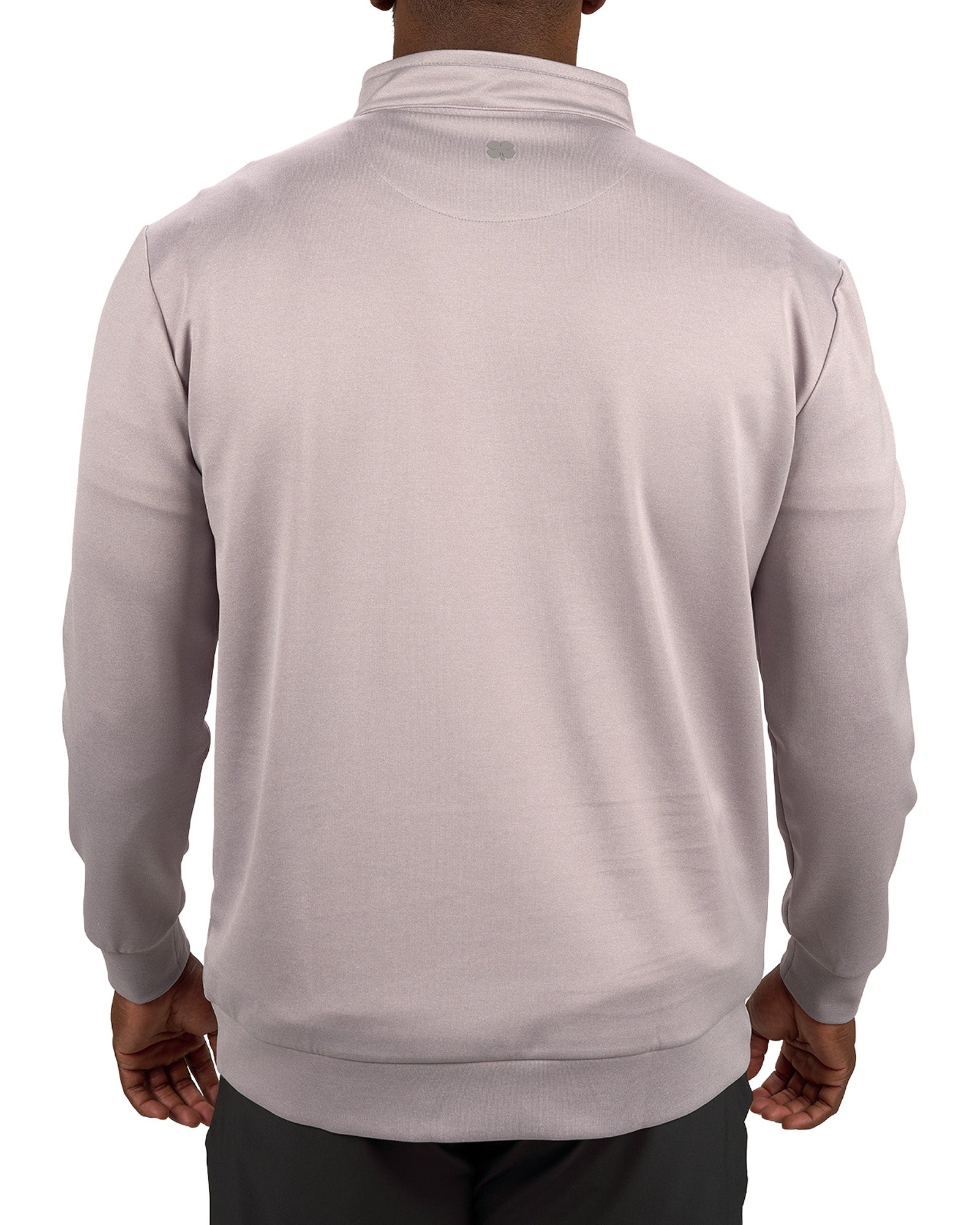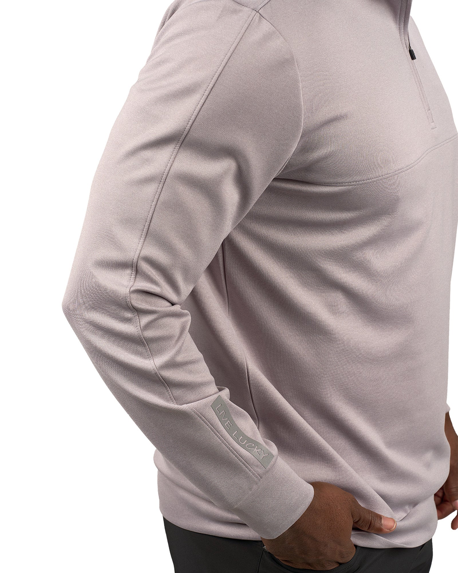 The versatile light grey Cross Q-Zip blends style and performance. This quarter-zip sweatshirt is crafted from double knit stretch fabric. Moisture-wicking, wrinkle-free, breathable, and with 4-way stretch, it ensures all-day comfort. Finished with our “Live Lucky” motto on the sleeve, it’s a wardrobe must-have.