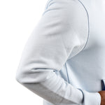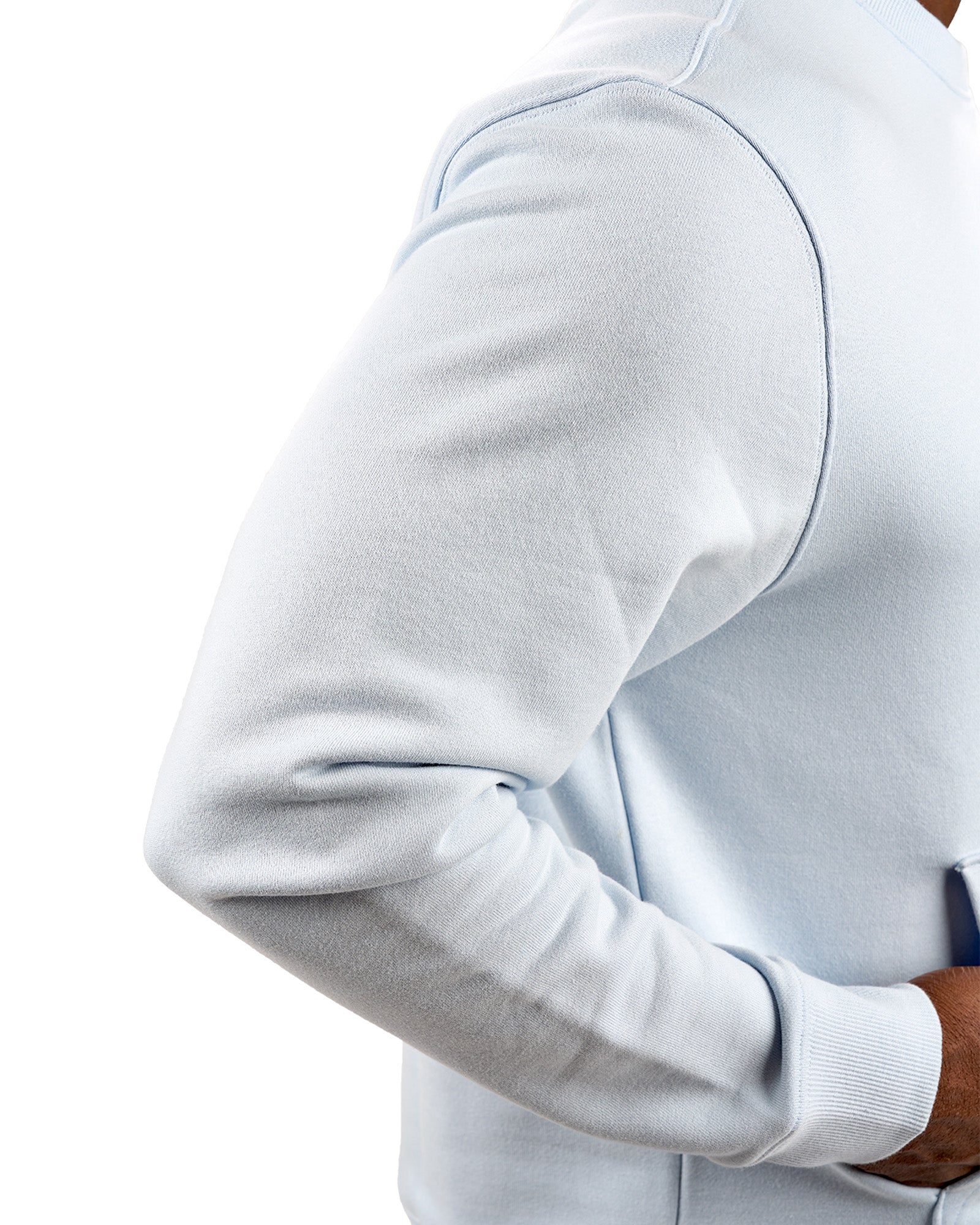 This premium ice blue crew neck pullover combines timeless style with modern performance. Crafted from a cotton double knit, it features a subtle embossed clover on the front for a sleek, tonal look. Wrinkle-free, moisture-wicking, and breathable, it’s perfect for effortless comfort and polished style.