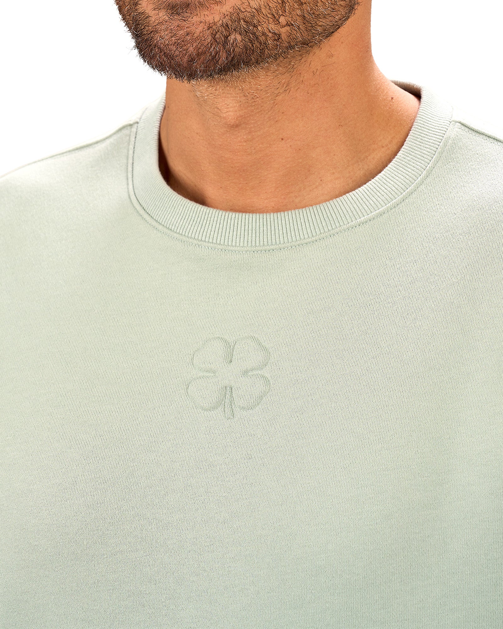 This premium sage crew neck pullover combines timeless style with modern performance. Crafted from a cotton double knit, it features a subtle embossed clover on the front for a sleek, tonal look. Wrinkle-free, moisture-wicking, and breathable, it’s perfect for effortless comfort and polished style.