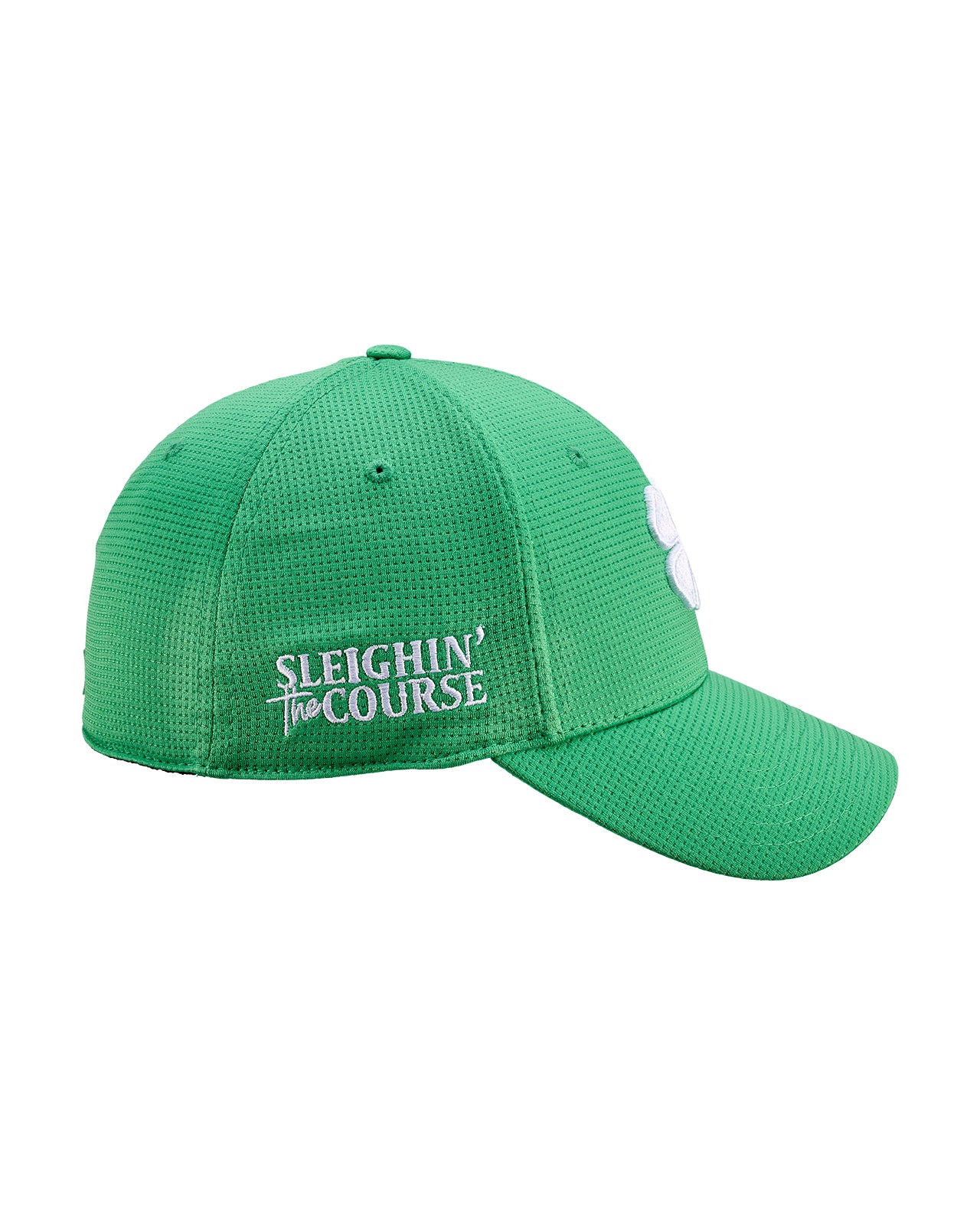 Bring holiday cheer to every round with our Iron X Electric Christmas Edition. This fitted green hat features a bold 3D white clover on the front and our playful Sleighin’ the Golf Course embroidered logo on the side. Built with our exclusive Memory-Fit™️ technology, it molds comfortably to your head for a superior fit, increased sweat absorption, and all-day wearability. Whether you're chasing birdies or sleighing your winter tee times, this limited-edition hat delivers the perfect blend of comfort, performance, and Christmas spirit.