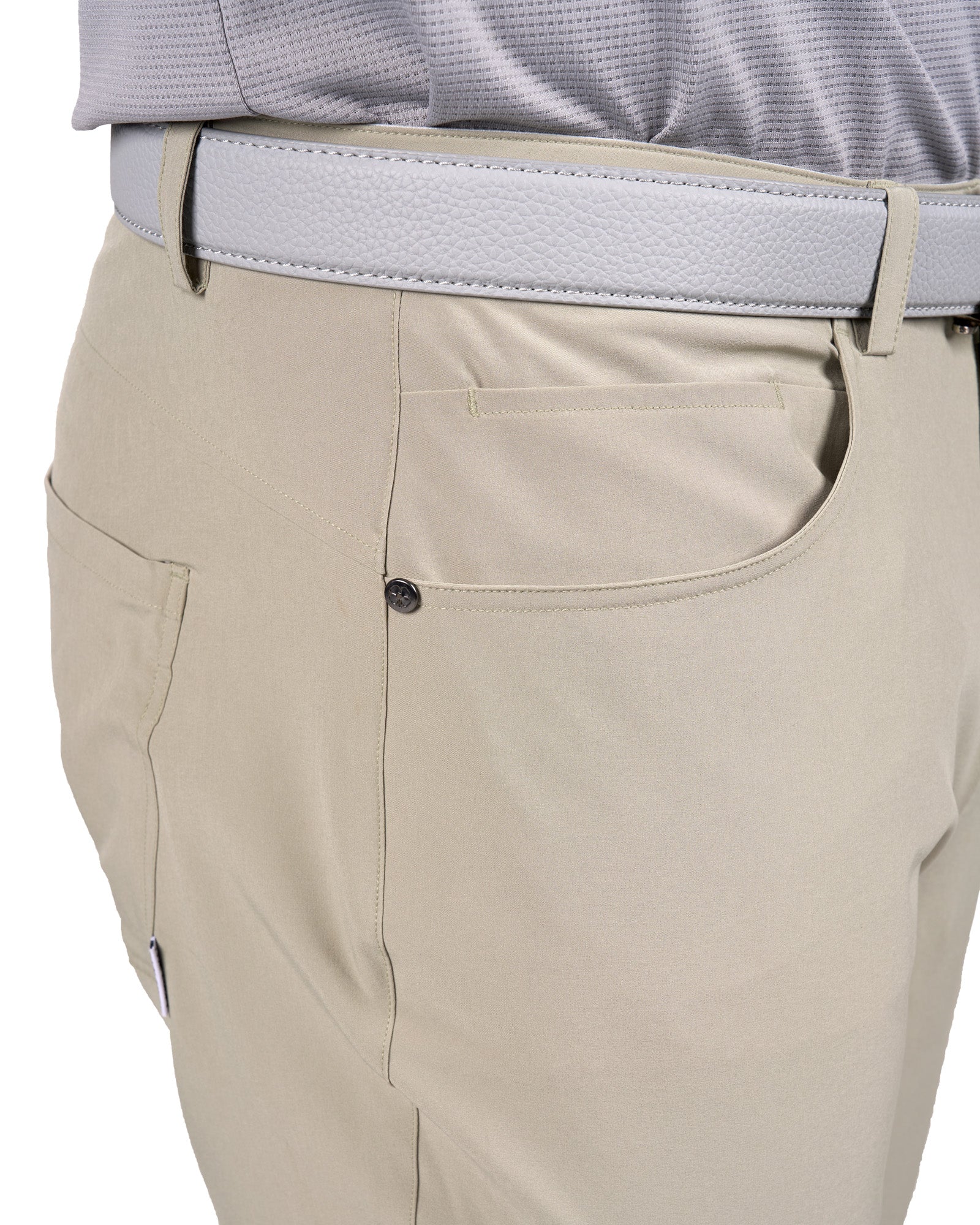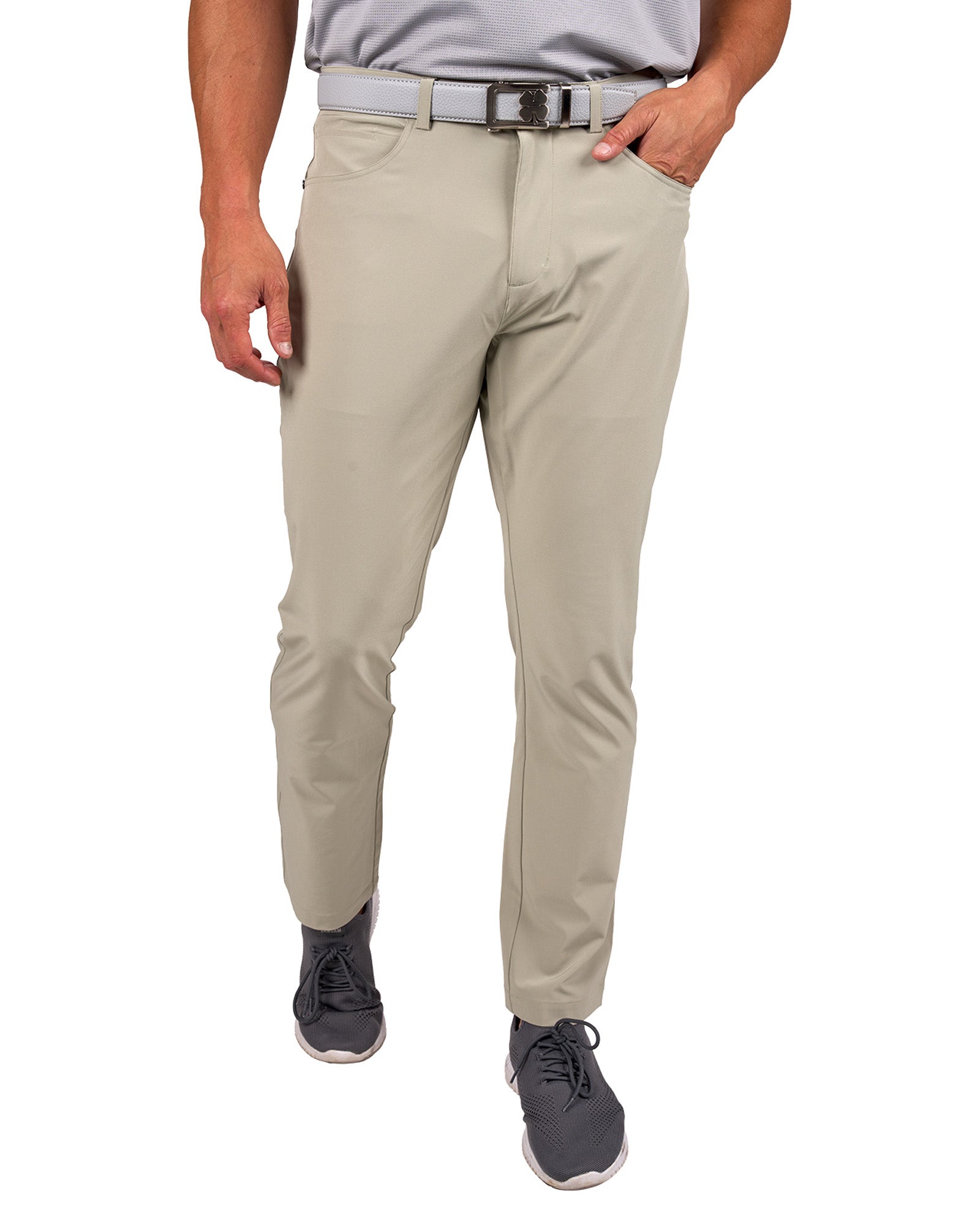 Our khaki Jack Slacks are crafted from 5-pocket stretch twill, offering unmatched breathability, wrinkle-free technology, low shrinkage, and 4-way stretch for ultimate comfort. These versatile pants transition seamlessly from the office to the golf course, to casual outings, making them perfect for any occasion.