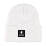 Elevate your style with our Snow White Lucky Cuff Beanie. Crafted from durable acrylic knit, this versatile beanie features a woven patch with a signature clover on the front, symbolizing luck and style. Perfect for any wardrobe, it offers warmth, comfort, and a timeless look that complements any outfit.