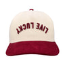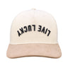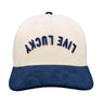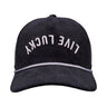 Top off your look with this vintage-inspired snapback hat. Featuring an adjustable fit, our Upside Down Luck 2 boasts a white crown with a contrasting navy brim and bold 3D embroidery. The design showcases our motto 'Live Lucky' in an upside down style, offering a perfect blend of classic style and modern edge.