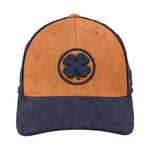 Perfect for fall, our adjustable Vao headwear features a corduroy camel brown and navy hat with a navy brim, and a navy 3D embroidered clover. Designed to look good in any scenario, this stylish hat is perfect for a night on the town or an evening in.