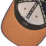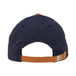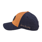 • Corduroy Adjustable Hat In Camel Brown And Navy With Navy Brim