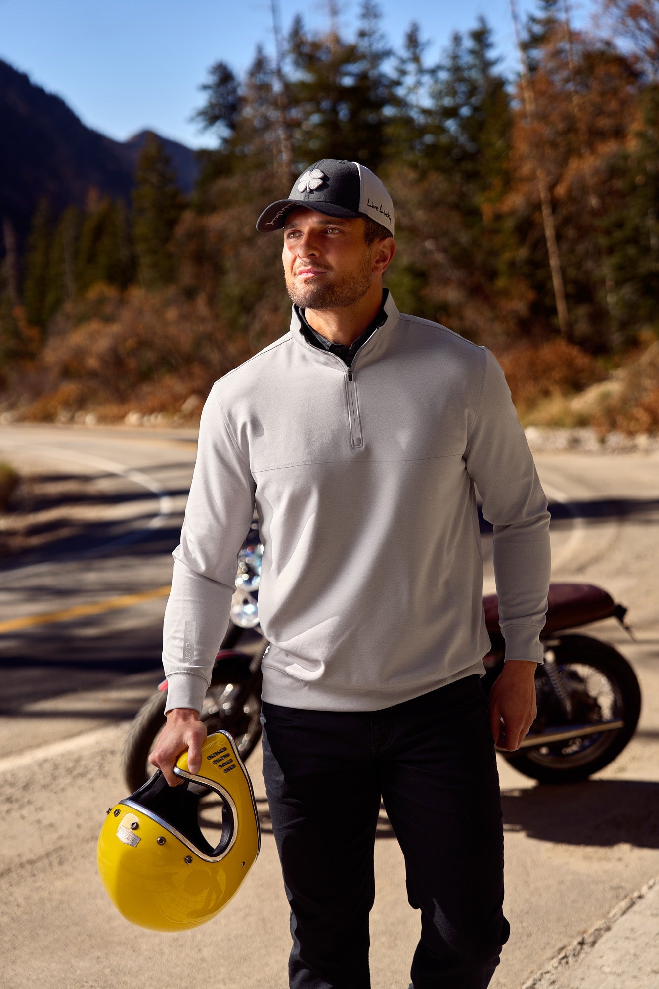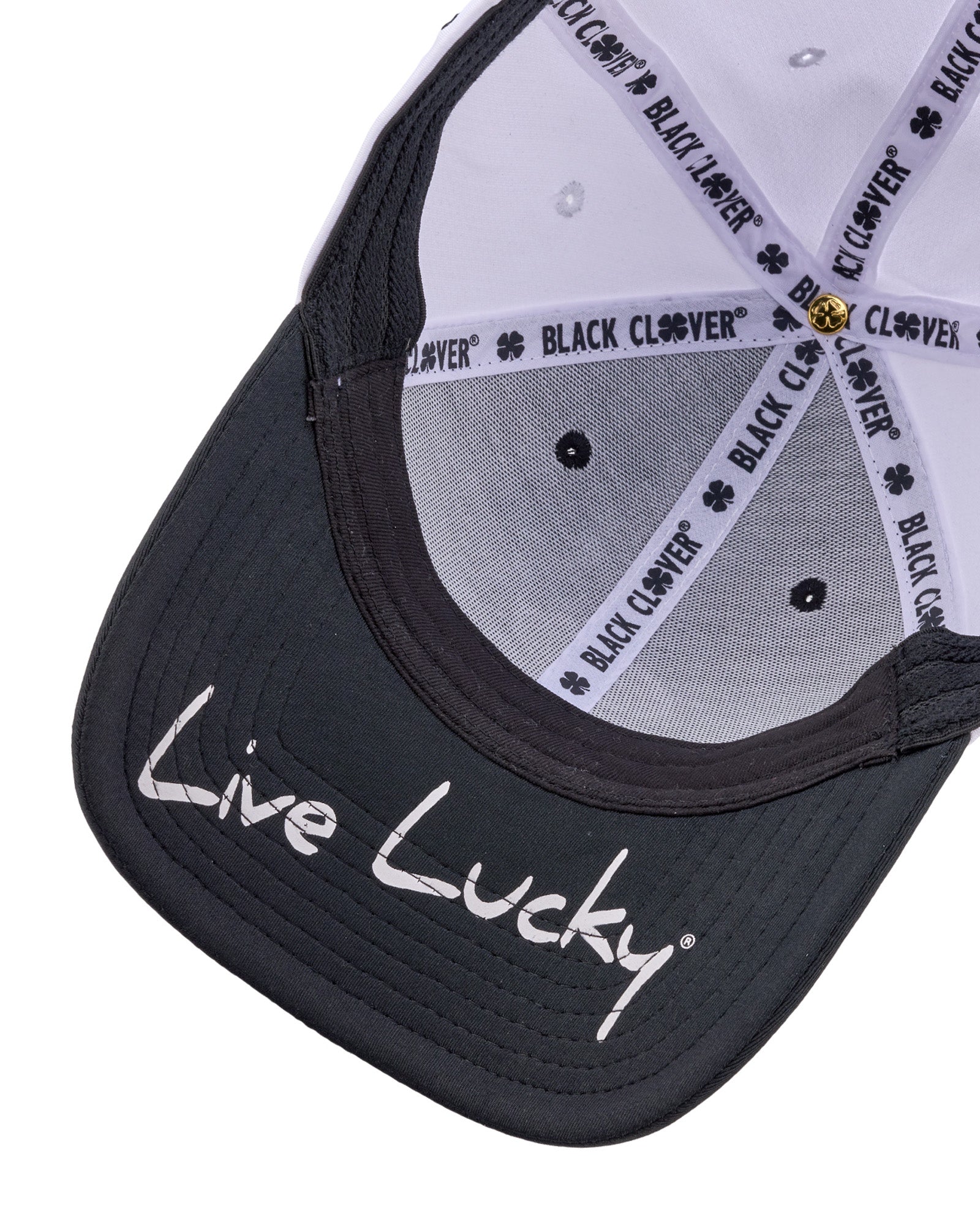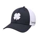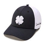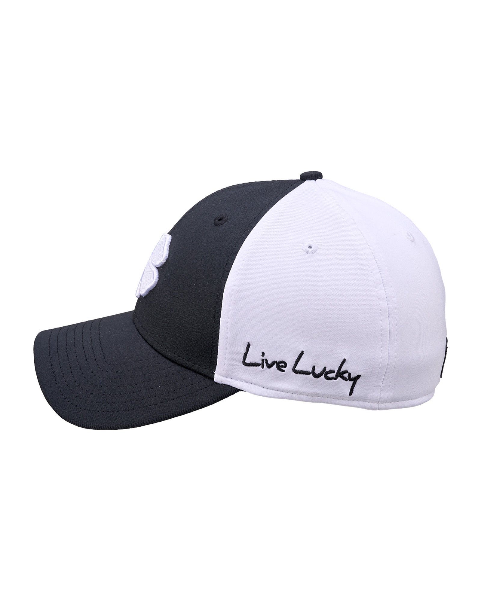 The Premium Clover 165 is our iconic white and black fitted hat built for both style and performance. It is crafted with moisture-wicking fabric to keep you dry and an A Flex headband that adapts for a flawless fit, delivering the all day comfort you need in a hat. Finished with our signature white 3D embroidered clover and a multi colored rope detail, this fitted golf hat blends timeless design with a modern edge. It is versatile, durable, and unmistakably sharp for every outfit you pair with it.