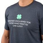 Level up your casual wear with our black Exclusive graphic tee. Crafted from a cotton/poly blend, this classic tee is the epitome of comfort and features our signature logo and exclusive text designed for those who want to live lucky. A versatile addition to any wardrobe, pair it with athletic shorts for a workout, with jeans for a casual style, or dress it up with slacks and a blazer for a more polished look. Makes an ideal gift.