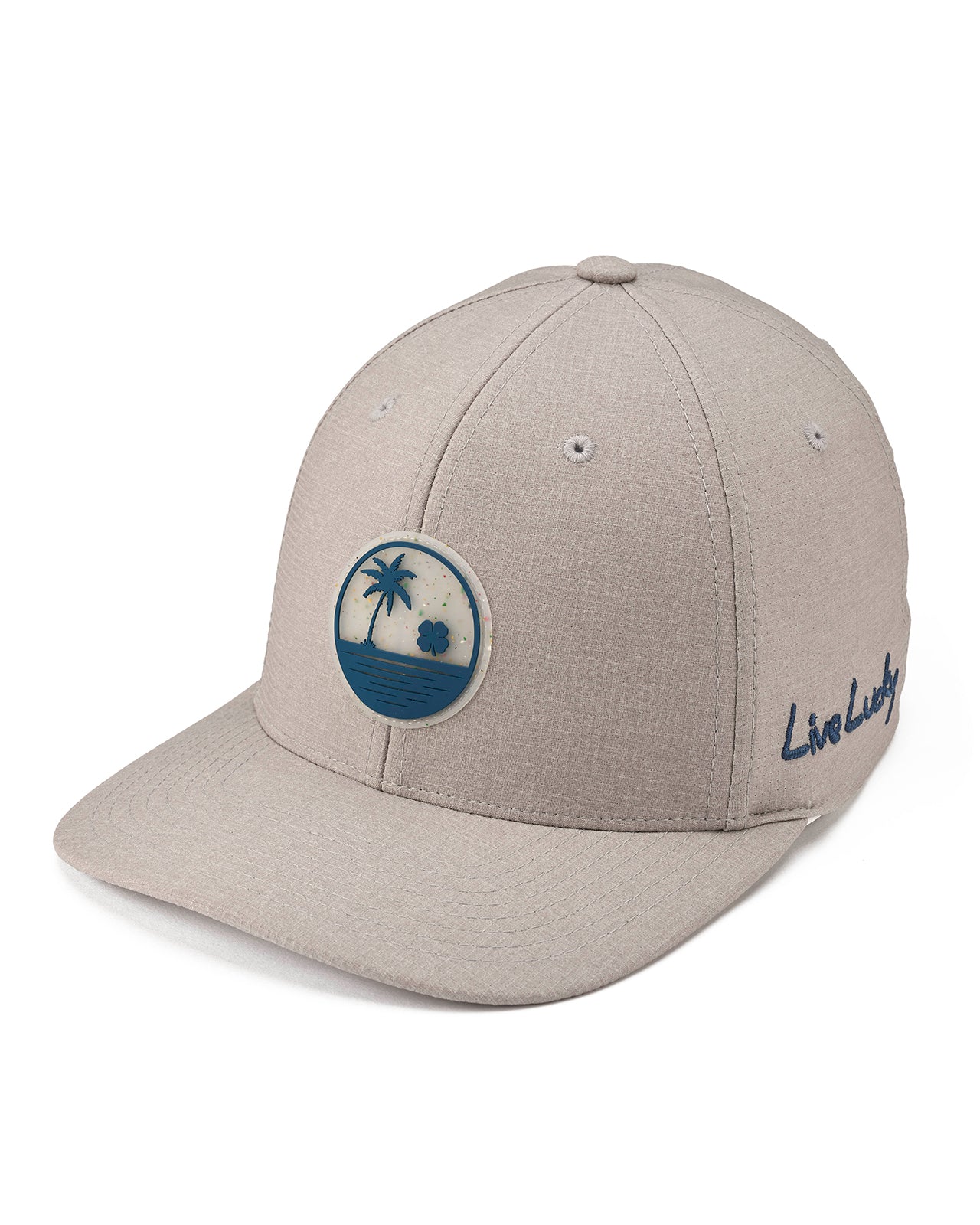 Take a mini vacation with our Bermuda hat, a stylish, neutral accessory for warm-weather days. Crafted in grey with a high-crown style, it features an HD patch with a navy blue palm tree. The adjustable snapback and lightweight design keep you cool, comfortable, and full of casual style.
