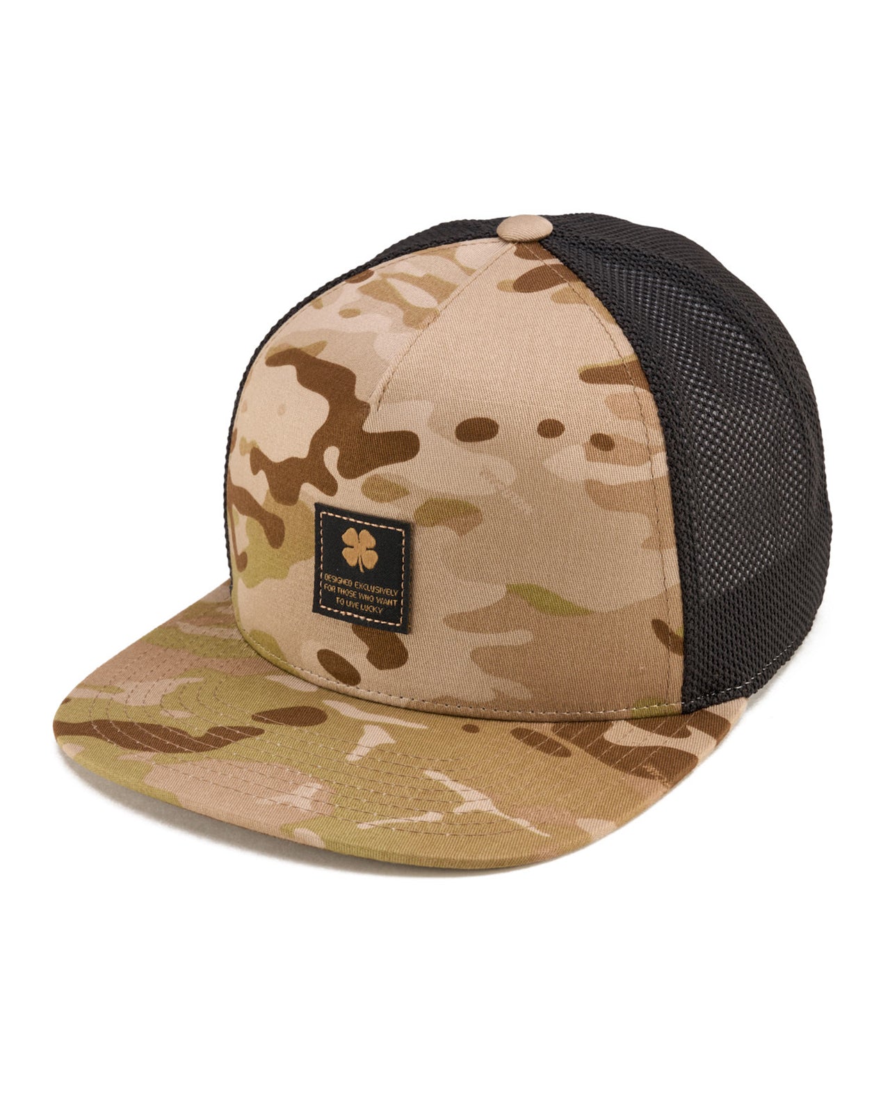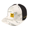 Our adjustable Reign 4 hat is a fantastic addition to any wardrobe. In brown camo with a black mesh back, this flat-brim five-panel arch fitted hat will keep you stylish, on-trend, and looking like a pro. Perfect for the golf course or for a night on the town, this versatile hat features a black woven patch.