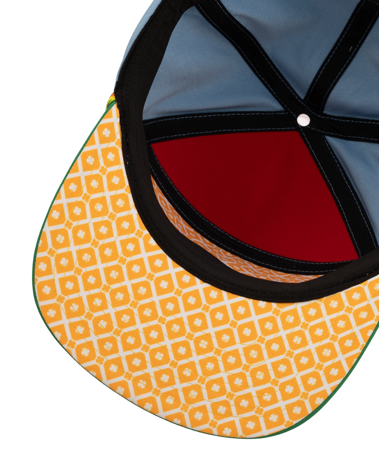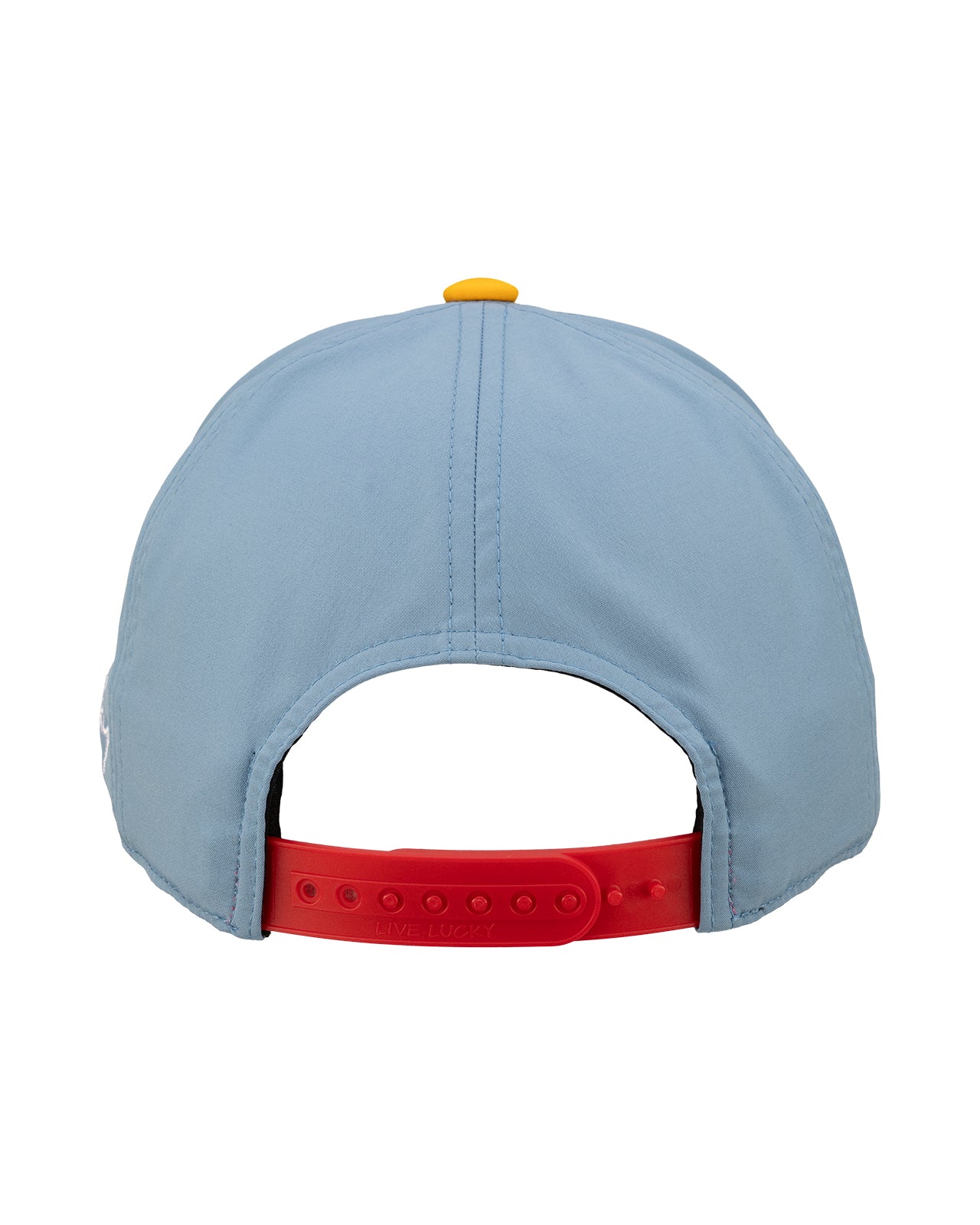 Our adjustable Yolo 2 hat is a colorful addition to any wardrobe. Multicolored with red and white applique, laser perforation, and accented by a rope, this flat-brim five-panel arch fitted hat will keep you stylish, on-trend, and looking like a pro. A perfect reminder to seize the day, this headwear is both trendy and meaningful.
