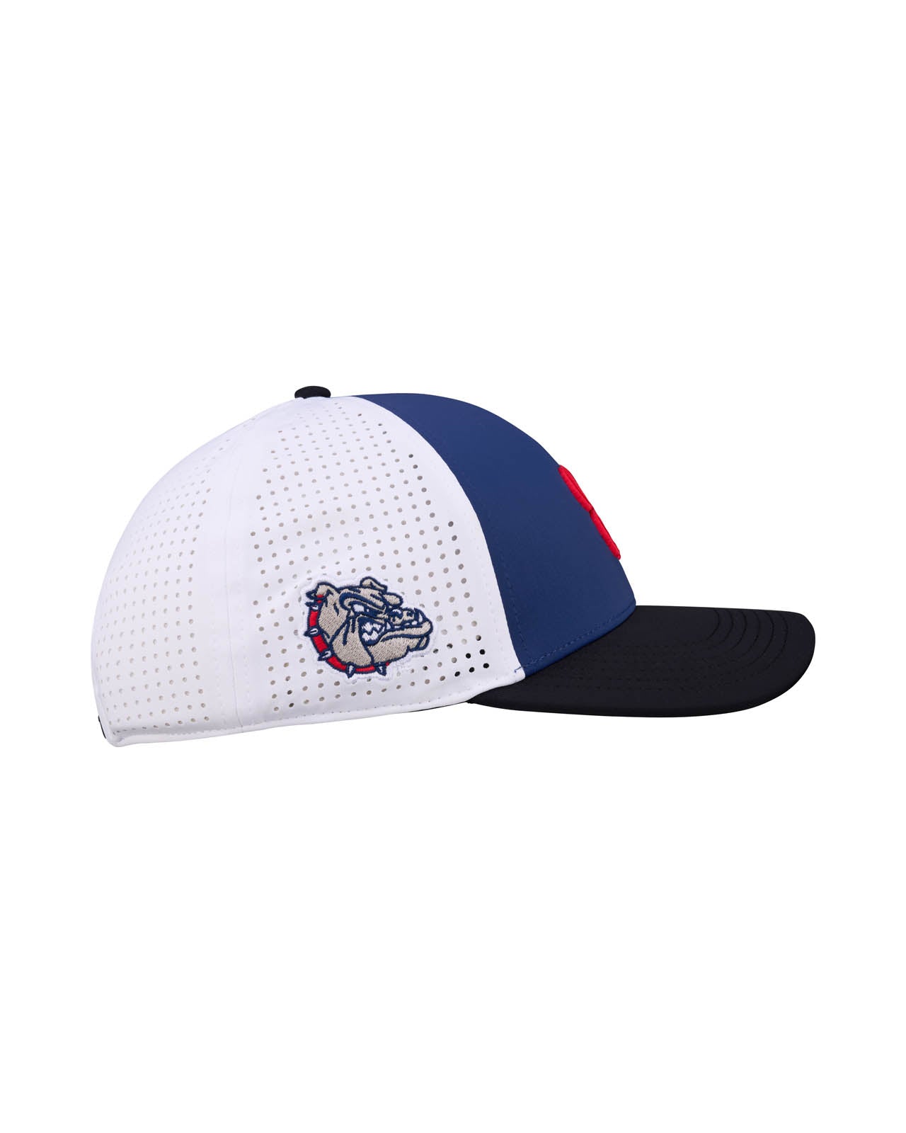Go Zags! The Gonzaga Benchmark puts Bulldog pride front and center with a navy, red, and white laser-cut design topped by a bold red 3D clover. Perforated panels keep you cool from tip-off to the final buzzer, while the ultra-comfortable fit makes this Gonzaga University snapback your go-to for game days, tailgates, and every moment you rep GU.