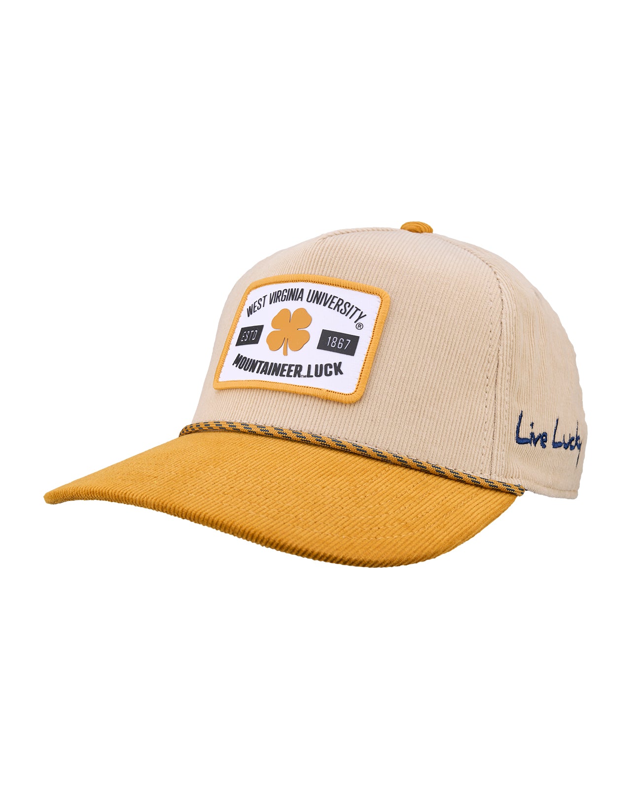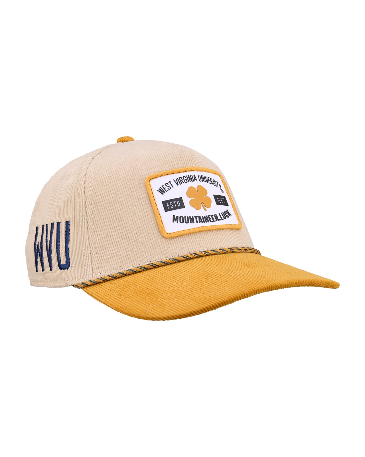 Celebrate Mountaineer tradition with the West Virginia Legacy Hat — a retro cream and navy snapback built for fans who live for game day heritage. Crafted from premium corduroy and finished with rope and an HD clover patch, this WVU snapback blends vintage style with modern comfort, making it a staple from Milan Puskar Stadium to everyday wear.