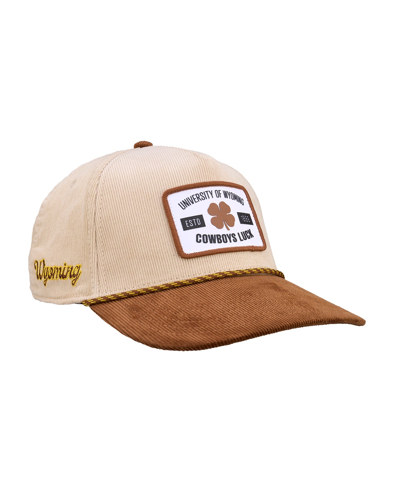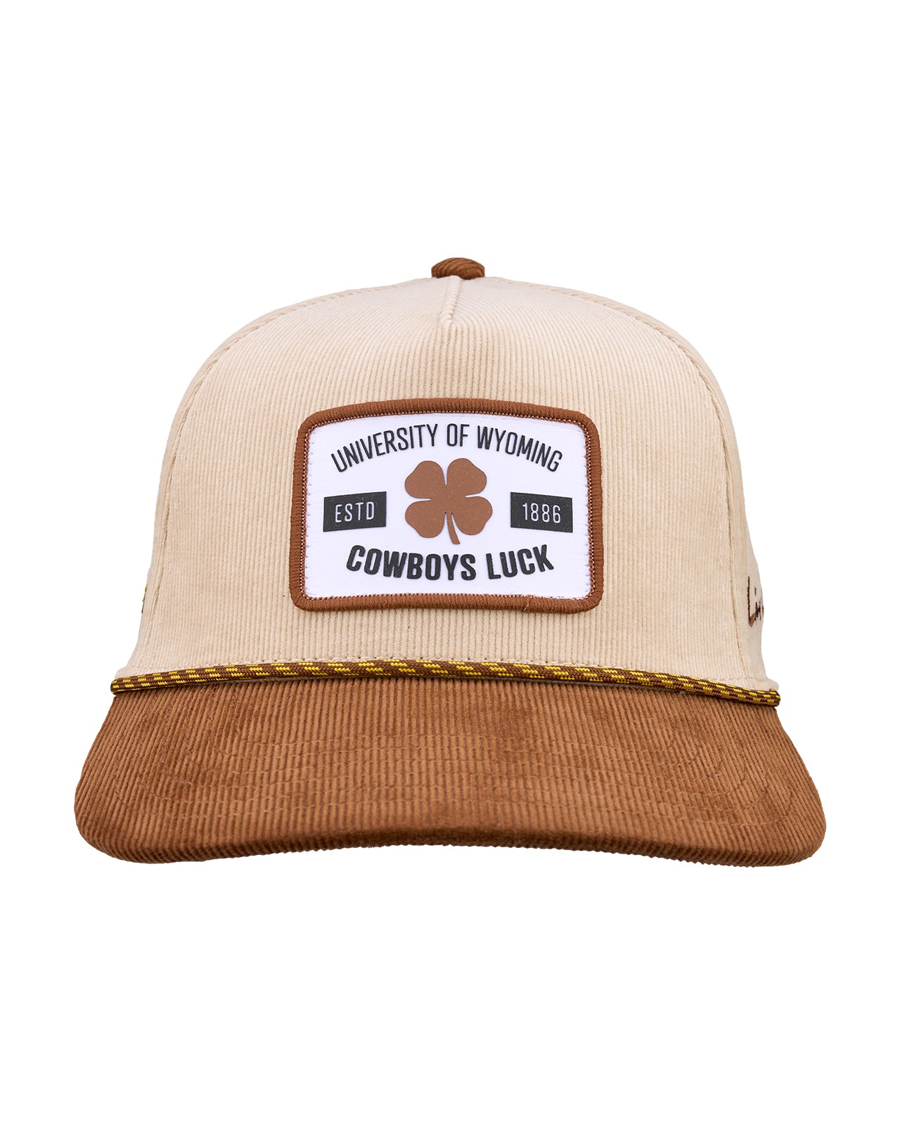 Celebrate Cowboys tradition with the Wyoming Legacy Hat — a retro cream and brown snapback built for fans who live for game day heritage. Crafted from premium corduroy and finished with rope and an HD clover patch, this University of Wyoming snapback blends vintage style with modern comfort, making it a staple from War Memorial Stadium to everyday wear.