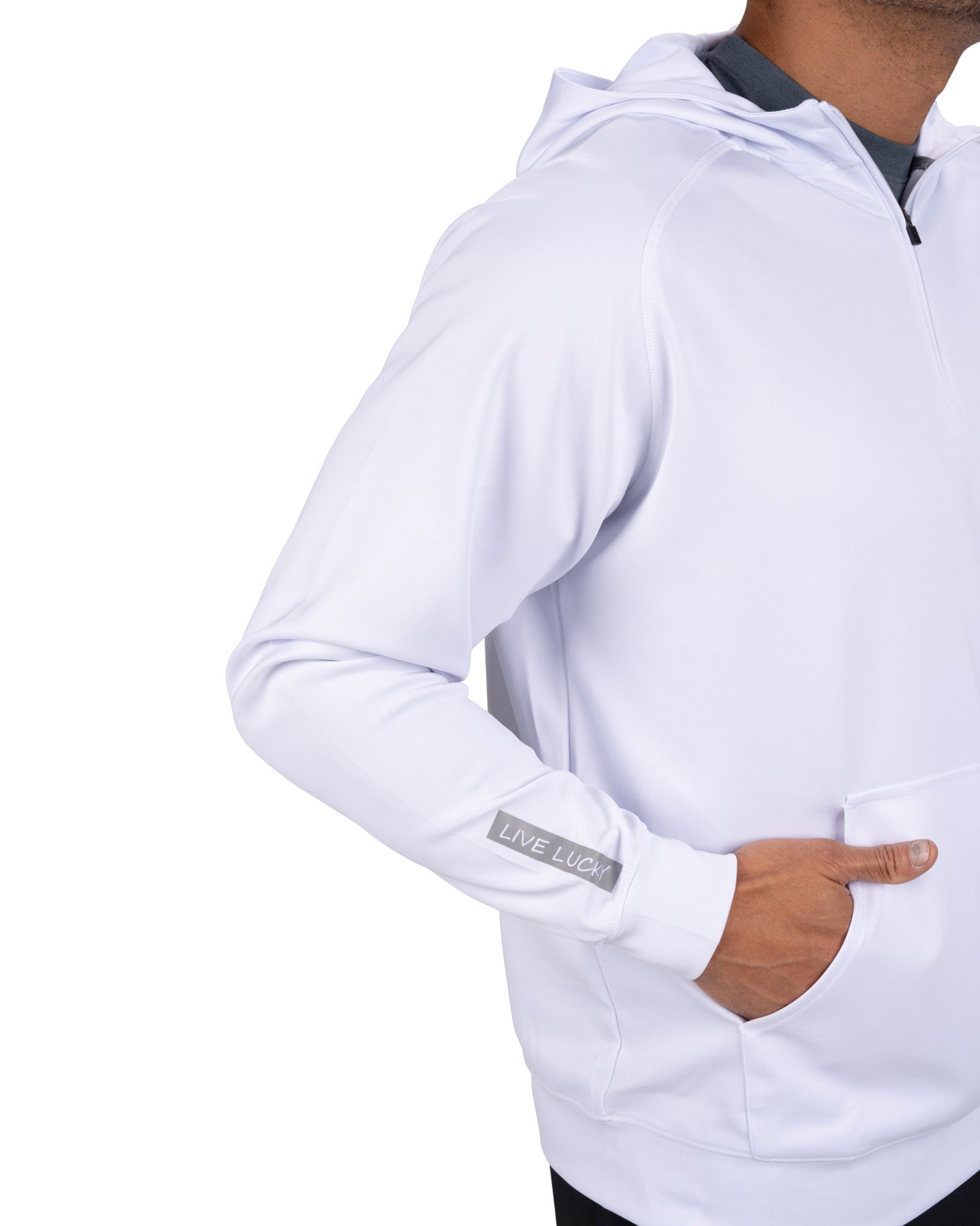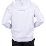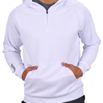 Introducing the Antony Hoodie in versatile white. This white quarter-zip hoodie, crafted from double knit stretch fabric, offers low shrinkage, moisture-wicking capabilities, shape retention, wrinkle-free ease, and breathability. Perfect for combining style and functionality.