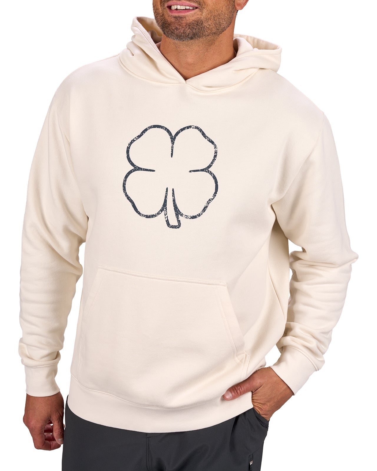 The Clover Luck Hoodie in vanilla is a must-have men’s off-white hoodie designed for both performance and everyday wear. Made from a luxury cotton and polyester blend, this athletic hoodie delivers ultimate comfort with built-in stretch and shape-retention technology to wear on repeat. The low-shrinkage fabric makes it easy to care for, while its textured finish adds a premium touch to your casual or active wardrobe. A white clover outline stands out on the chest, paired with a sleek black clover logo on the back of the hood for a clean, confident look. Perfect as a golf hoodie, gym layer, or casual hoodie for men.