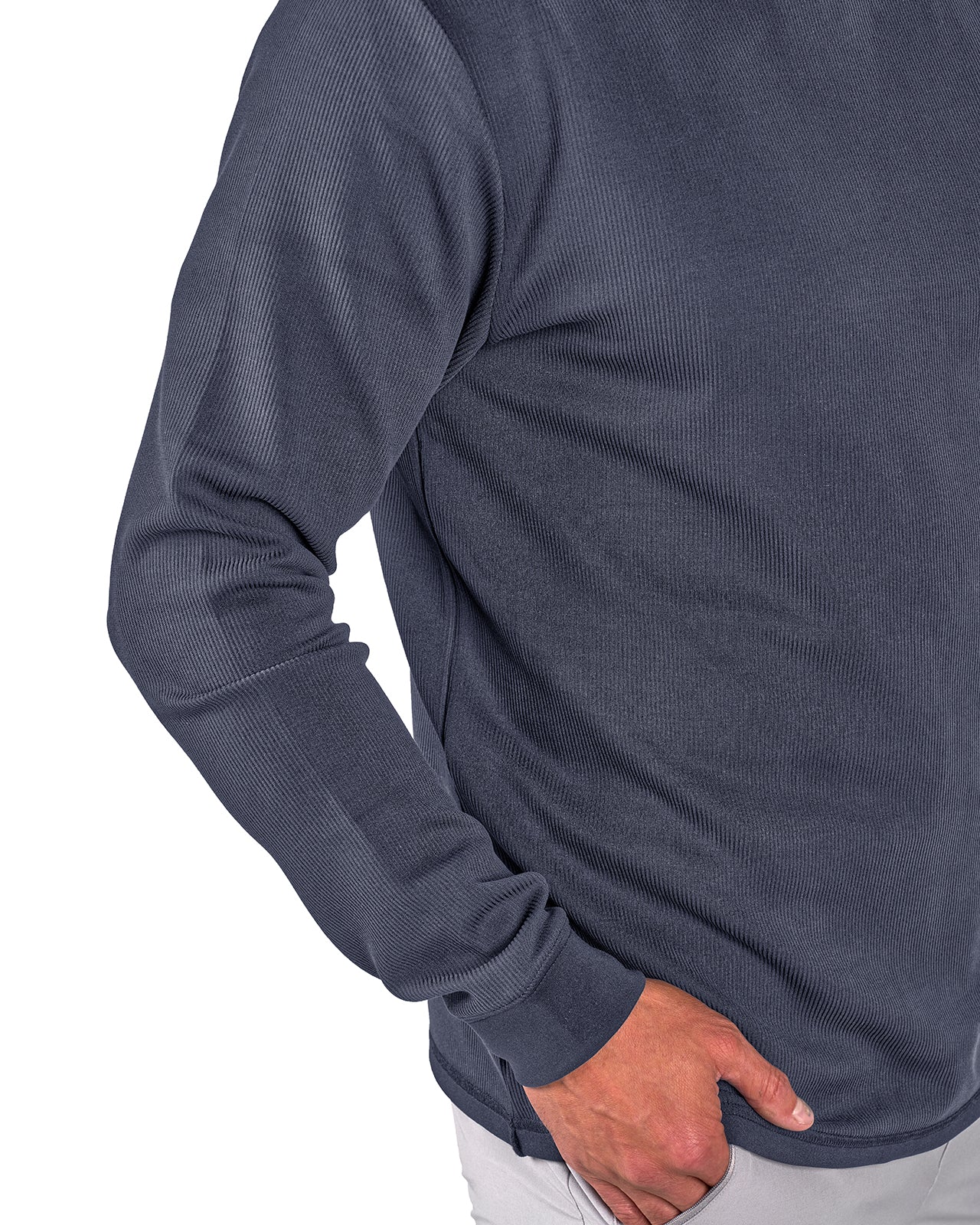 The Peyton Hoodie in navy delivers effortless comfort with a butter-soft feel and built-in performance. Its 4-way stretch moves with you, while moisture-wicking fabric and UV protection keep you cool and covered. It resists wrinkles and holds shape to remain stylish through the entie day whether you're layering up for a crisp morning tee time or heading out for a laid-back weekend.