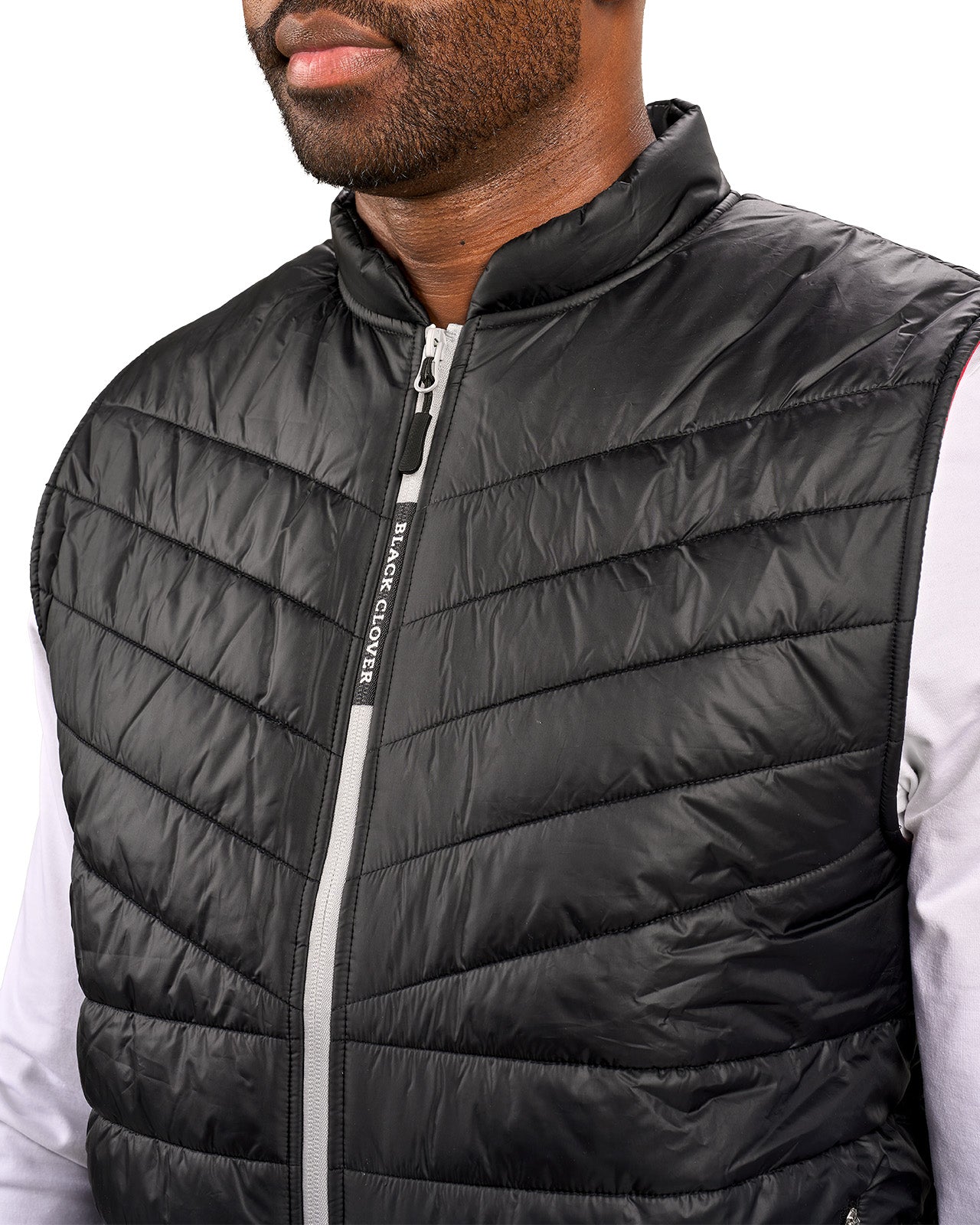 Man wearing a light grey quarter zip sweater from Black Clover featuring a small clover below the zipper