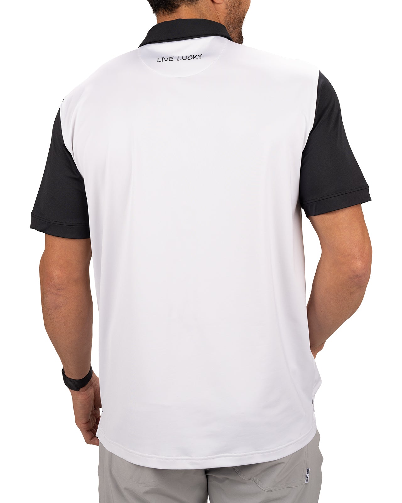 The Vance polo combines bold design with premium performance. Crafted from single jersey stretch Syntrel, it features a solid white body with contrasting black sleeves and collar for a striking look. Wrinkle-free, breathable, with 4-way stretch and shape retention technology, it’s built for comfort and style.