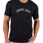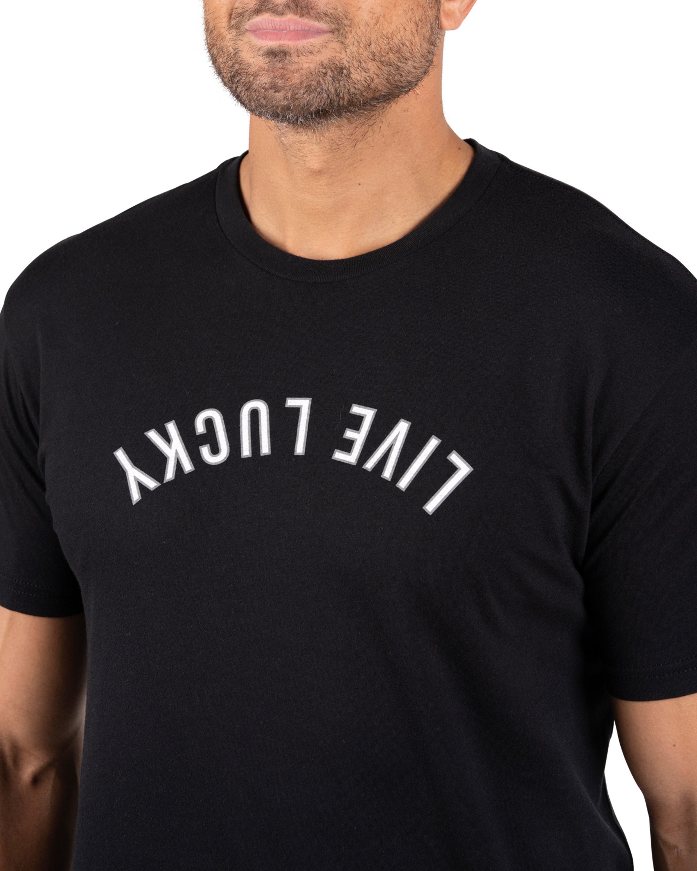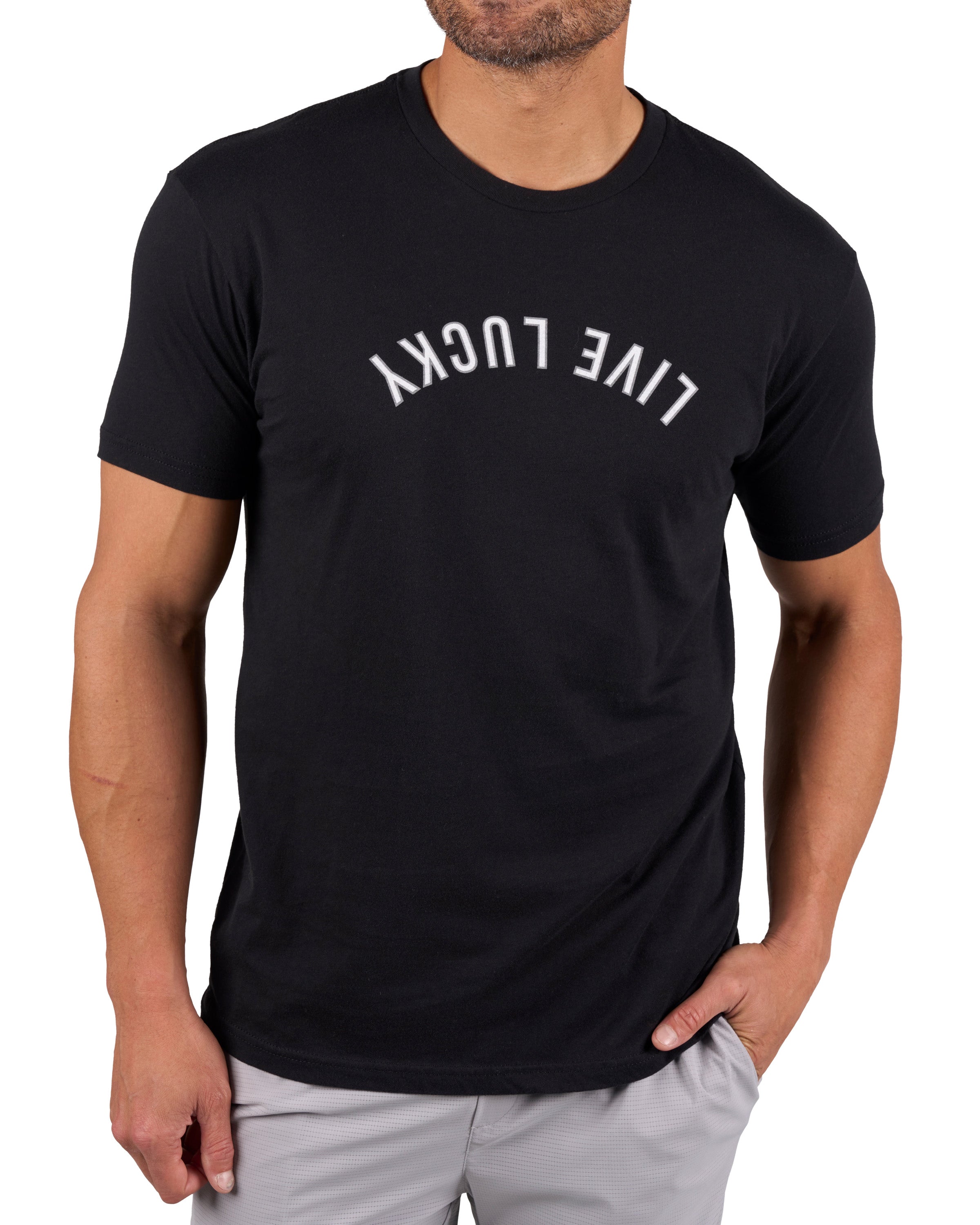 The Inverted Luck 1 Tee in black is made from soft 100% cotton with a fit designed to hold its shape. The upside-down Live Lucky logo in crisp white brings a retro-inspired edge that sets it apart from the standard graphic tee. Pair with our Upside Down Luck Collection for the ultimate style.