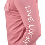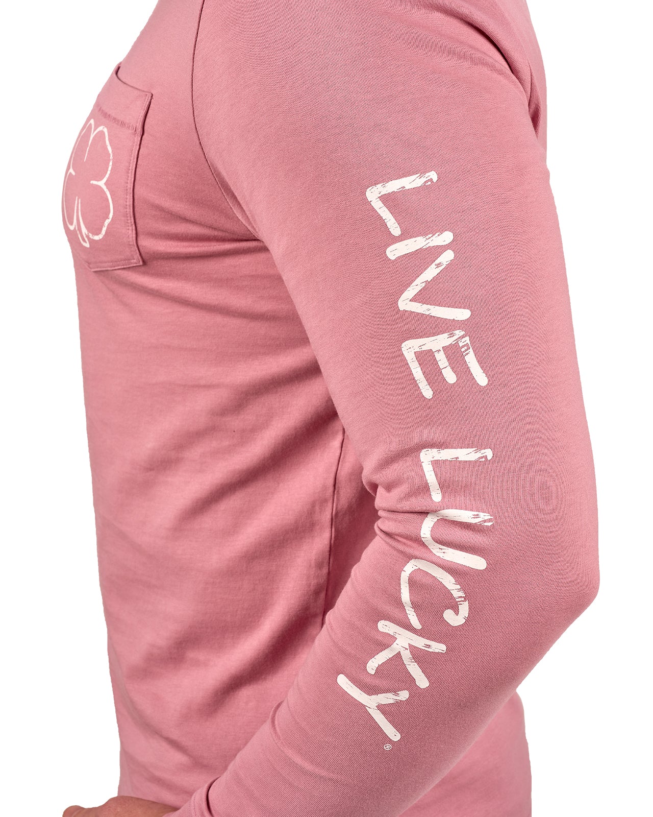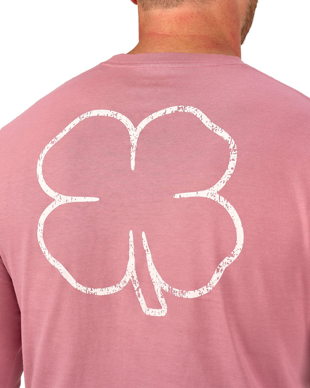 Our cosmic pink long-sleeved Retro T combines vintage charm with modern comfort. Made from 100% cotton with a soda wash, it’s super soft, breathable, wrinkle-free, and retains its shape wear after wear. Featuring a solid color with a white clover outline on the front pocket and back, it’s effortlessly stylish and timeless.