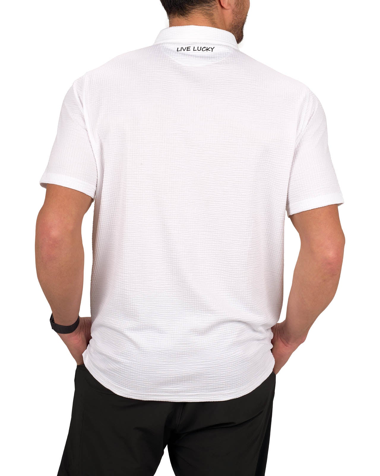 Discover premium men’s tops designed for performance, style, and versatility. From golf polos and quarter zips to lightweight jackets and graphic tees, each piece is crafted with breathable, comfortable materials. Our tops offer exclusive technologies including Chilled Luck fabrics to keep you cool all day, high moisture transportation for dryness, 4-way stretch to move with you, elite no-curl collars, and more. Effortlessly elevate your look with sleek, comfortable golf apparel built for all-day movement and durability. These men’s golf shirts deliver timeless style that is perfect for the course, the office, or a night downtown, and made to be worn on repeat anytime.