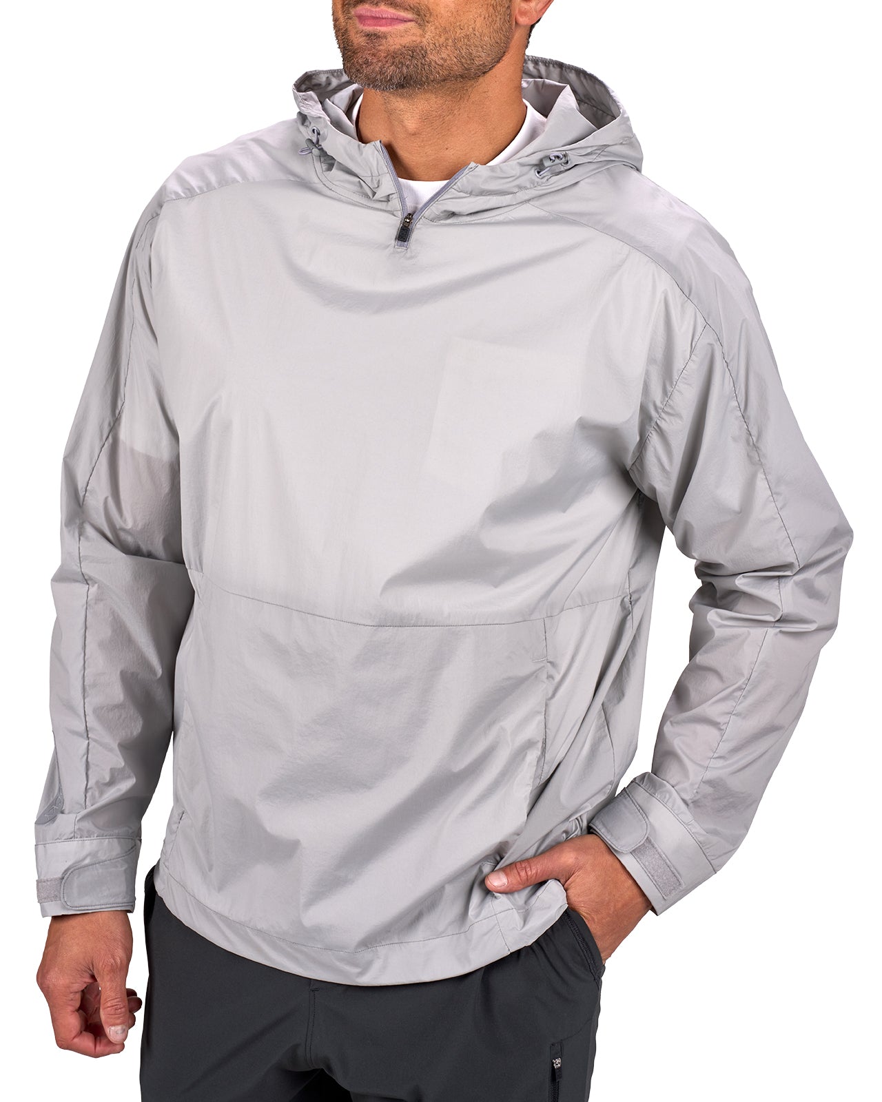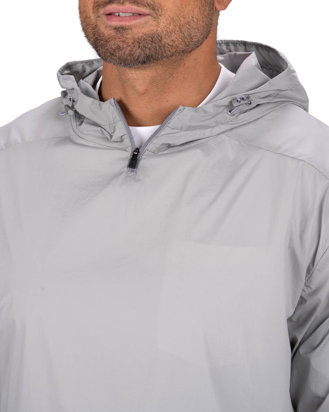 The Lightweight Larry jacket in light grey is your go-to outer layer for unpredictable weather and high-performance days. Made from a flexible nylon and spandex blend, this sleek athletic jacket features water-repellent stretch materials that offers protection from wind and light rain without losing breathability. Lightweight, textured, and easy to move in, it’s the perfect blend of windbreaker function and elevated style. Wear for the perfect fit for the golf course, morning runs, or everyday layering.