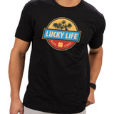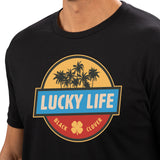 The Lucky Life Tee gives a nod to a little bit of paradise on a black background. Crafted from a cotton-poly blend, it ensures no-to-low shrinkage, a comfortable fit, and durability. Easy to style, it pairs perfectly with a blazer for a night out or athletic shorts for a casual, active day.