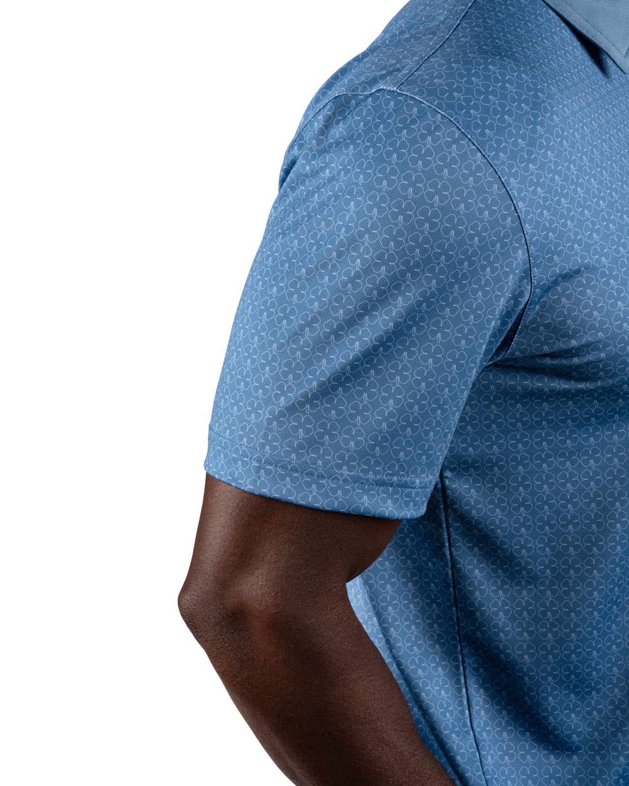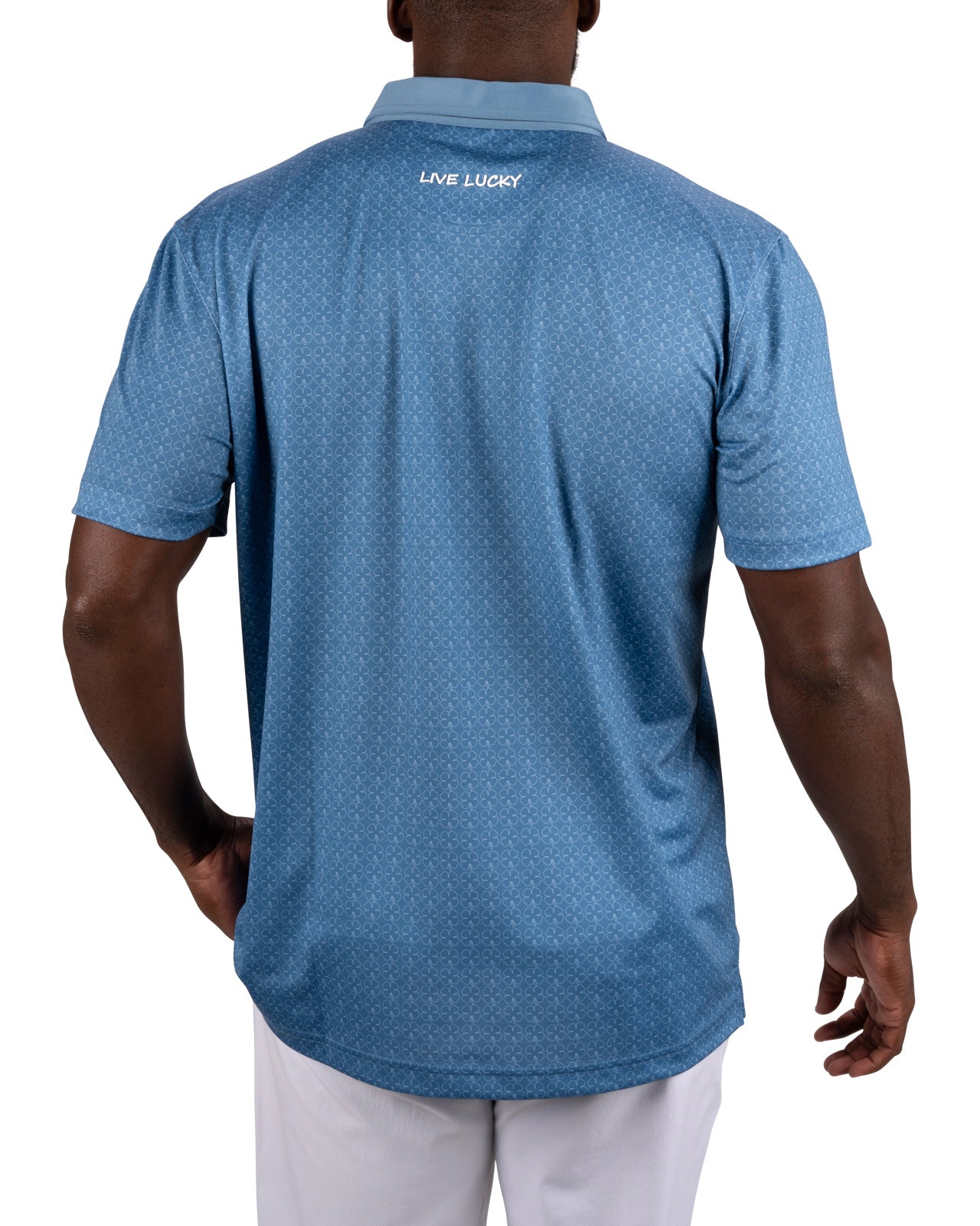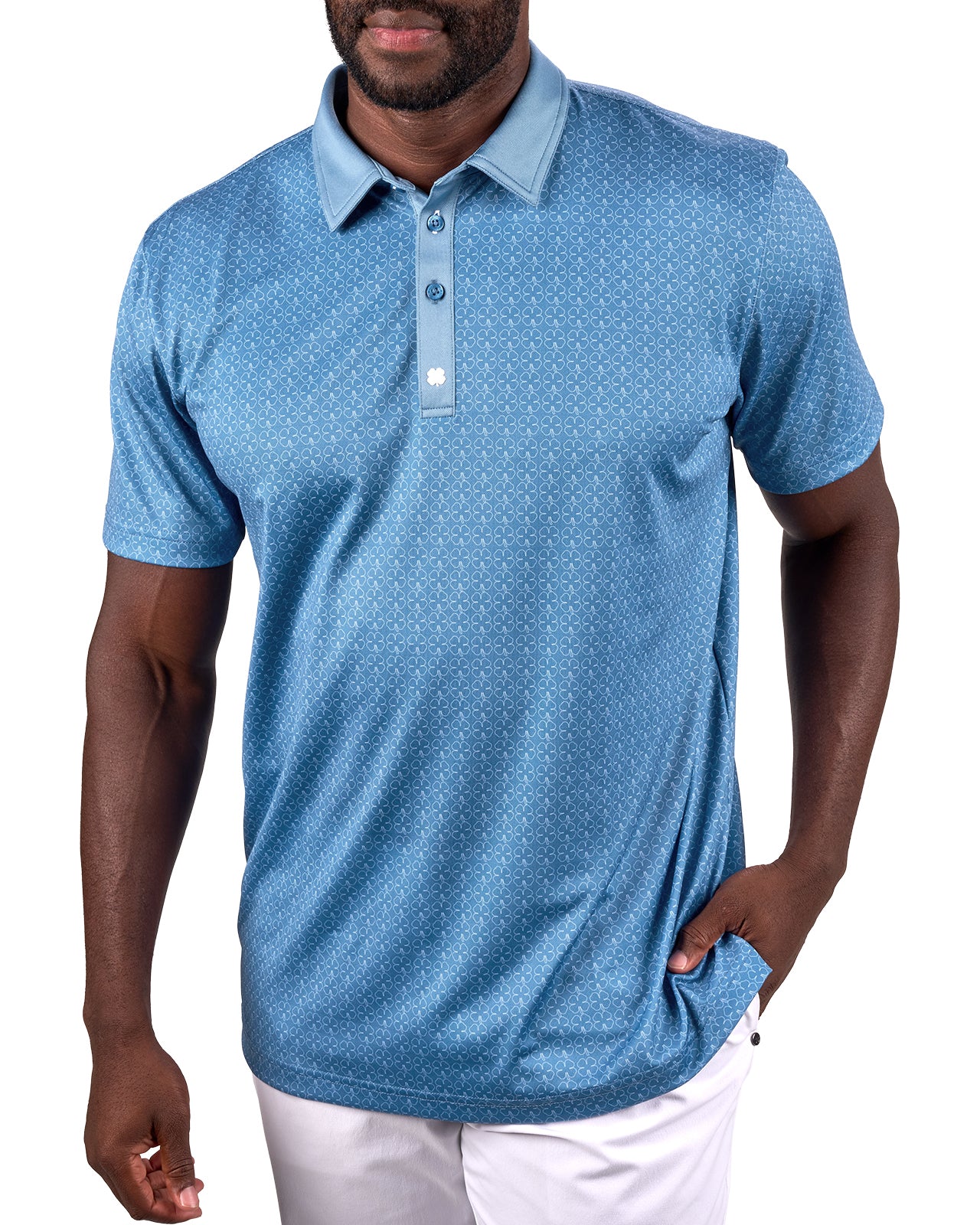 The Clover Crush Polo delivers unbeatable style with an all-over subtle white clover outline pattern on a moody blue base. Its poly spandex blend and soft pique stretch fabric provides all-day comfort. Its breathability and high moisture transportation will keep you looking stylish while staying cool and dry for the entire day. Style this bold and versatile polo up or down on the course, in the office, or for your downtown style.