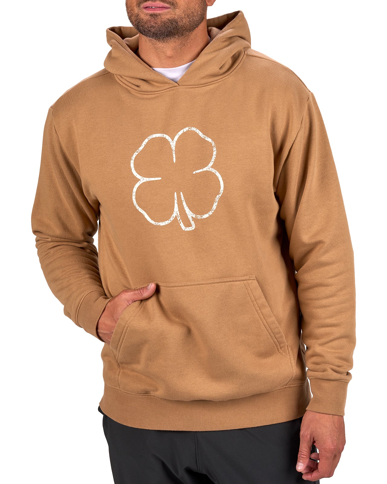The Clover Luck Hoodie in ginger root is a must-have men’s brown hoodie designed for both performance and everyday wear. Made from a luxury cotton and polyester blend, this athletic hoodie delivers ultimate comfort with built-in stretch and shape-retention technology to wear on repeat. The low-shrinkage fabric makes it easy to care for, while its textured finish adds a premium touch to your casual or active wardrobe. A white clover outline stands out on the chest, paired with a sleek black clover logo on the back of the hood for a clean, confident look. Perfect as a golf hoodie, gym layer, or casual hoodie for men.