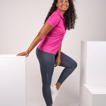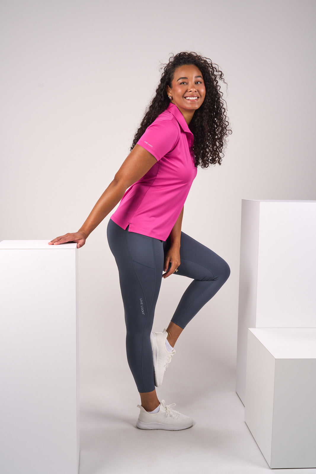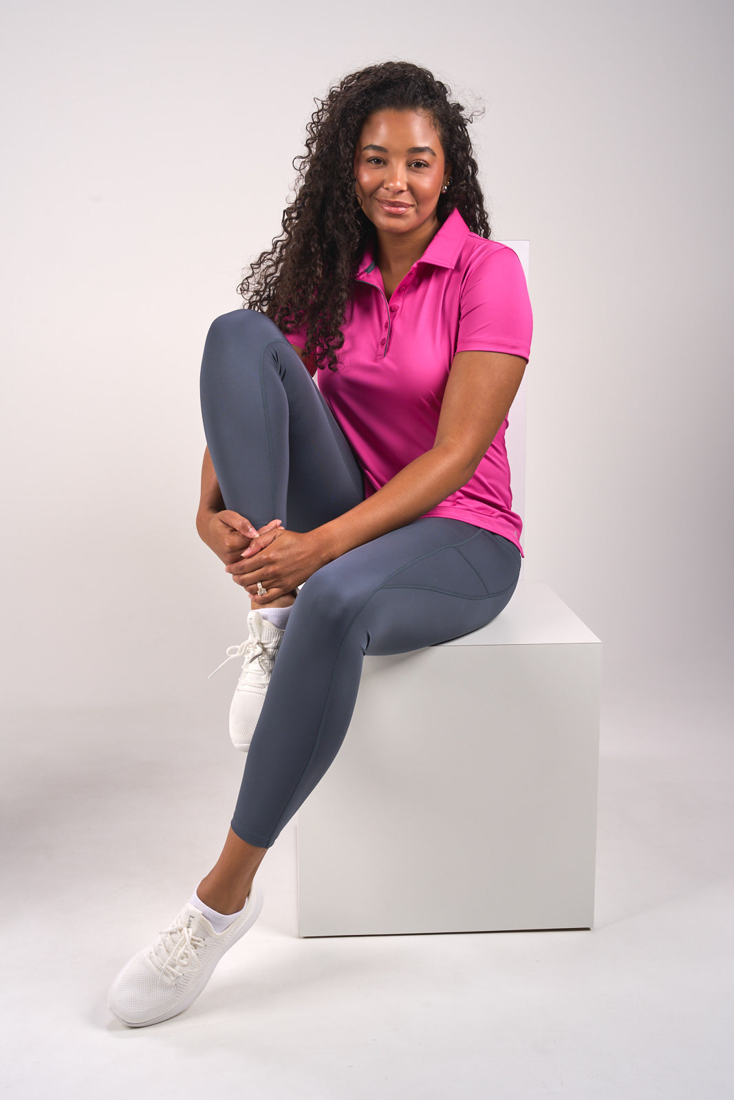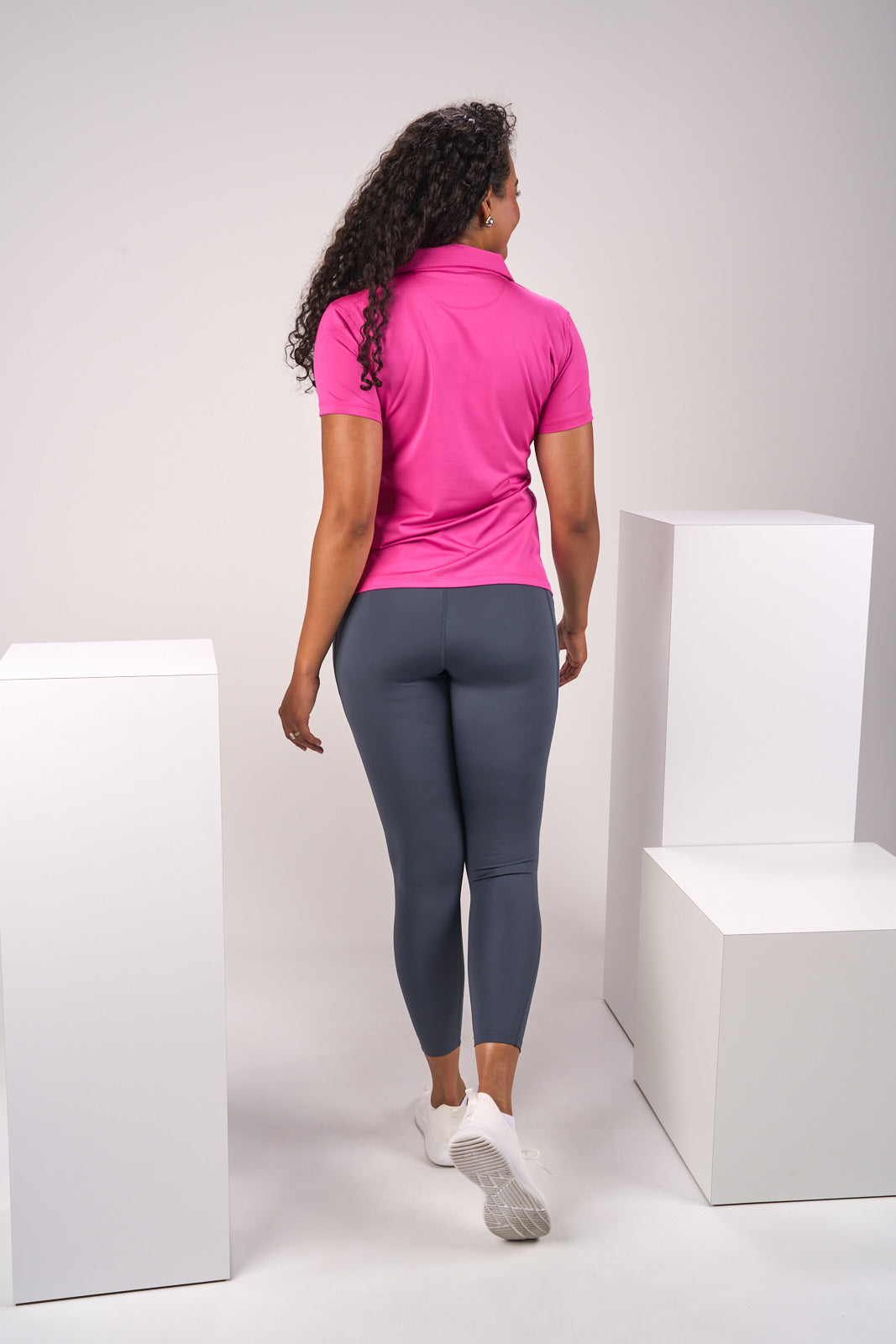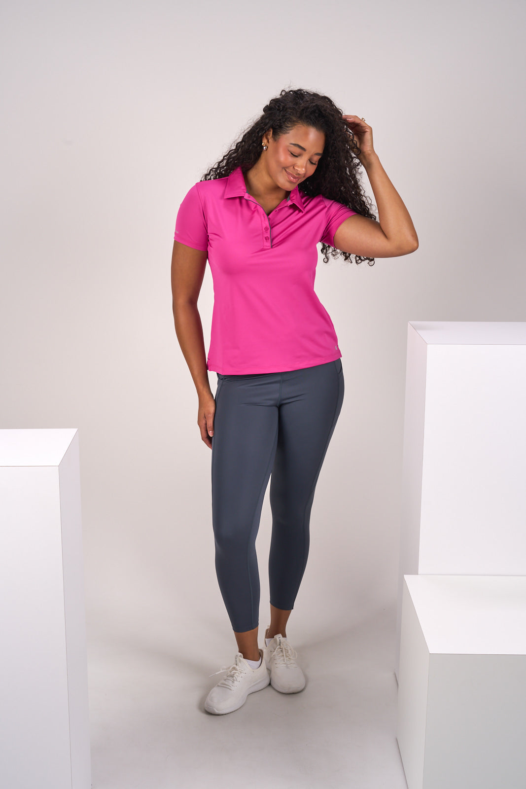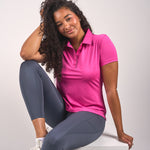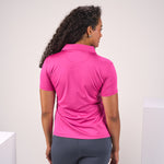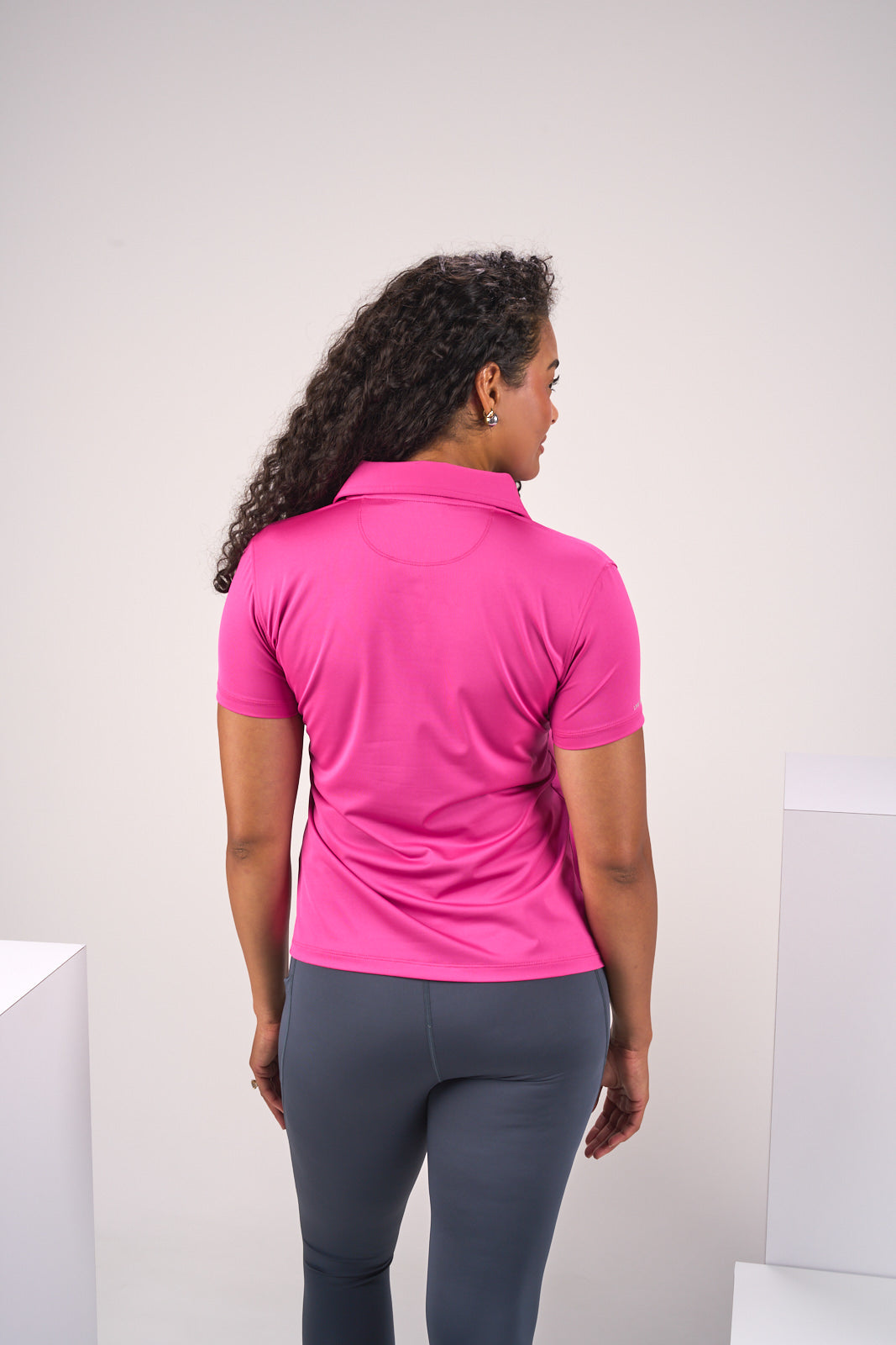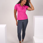Our bright pink women's Mina Polo exudes elegance with its solid electric pink base and chic piping on the five-button placket. Crafted from poly spandex Syntrel, it’s super soft, wrinkle-free, moisture-wicking, and breathable. Perfectly blending style and comfort, it’s a versatile choice for any occasion.
