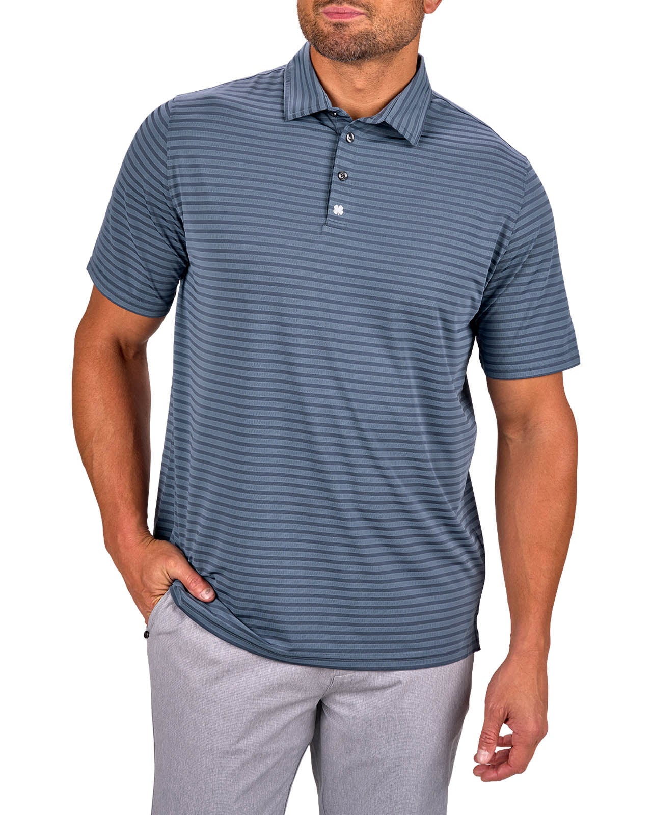 Step up your wardrobe with the Palmer Jacquard Polo in black sand. Made from a premium poly-spandex blend, this polo offers a breathable, wrinkle-free design that keeps you looking sharp all day. Featuring a subtle striped jacquard pattern, it combines style with comfort and low shrinkage for long-lasting wear.