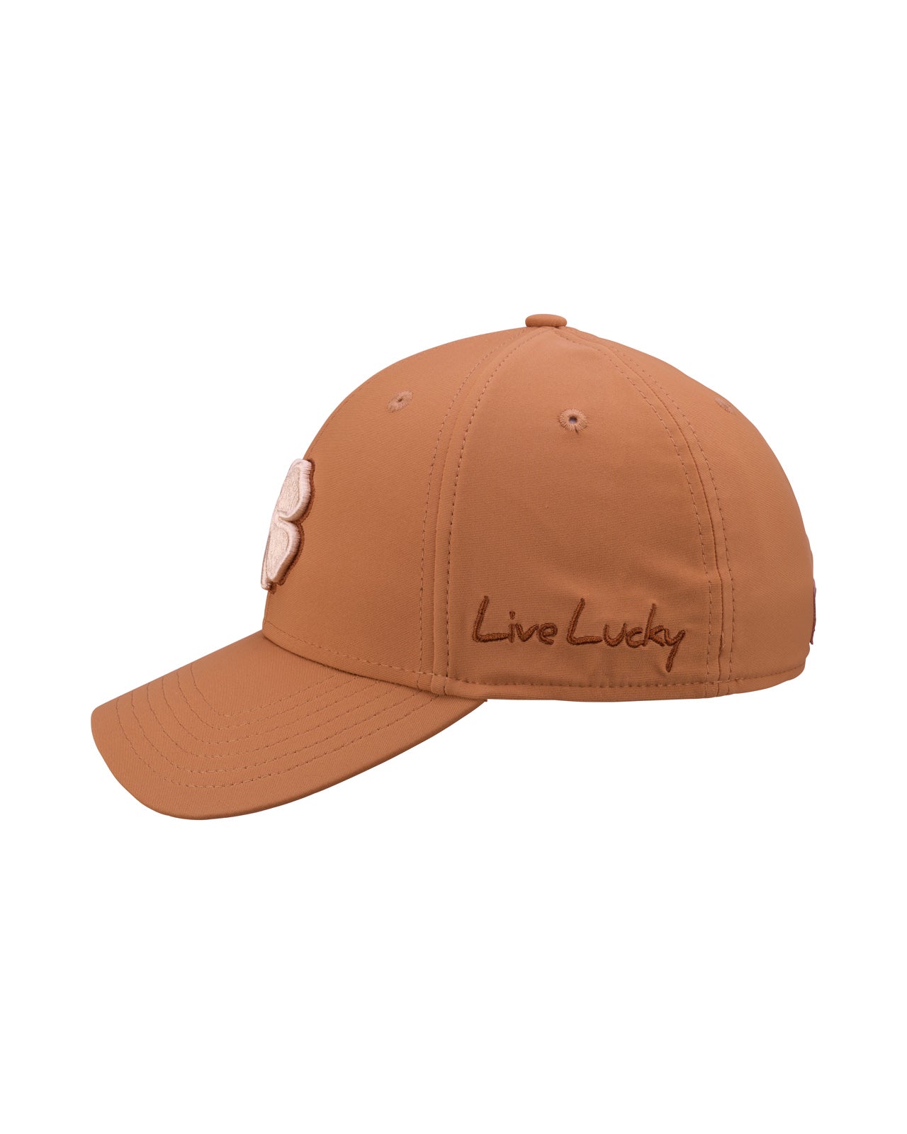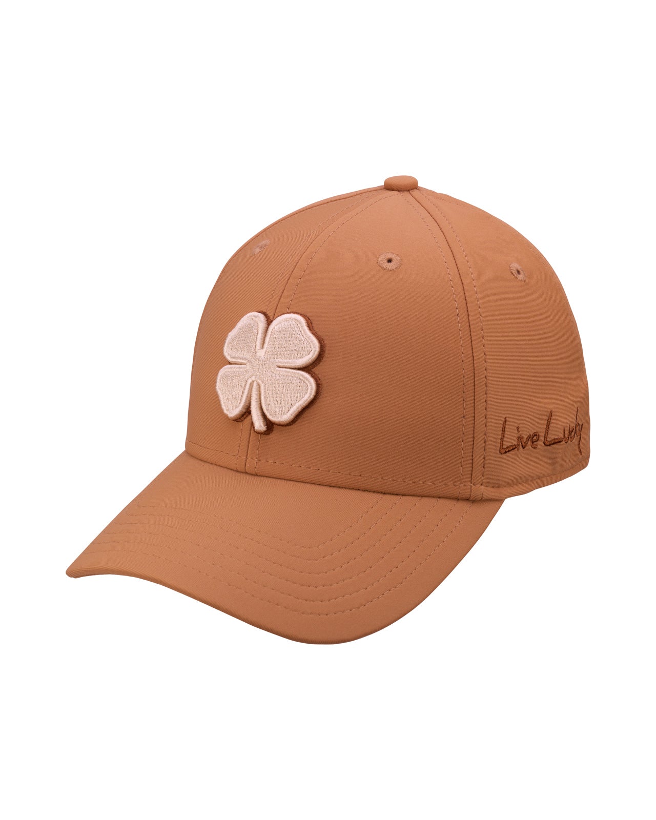The Premium Clover 164 is our iconic ginger root brown fitted hat built for both style and performance. It is crafted with moisture-wicking fabric to keep you dry and an A Flex headband that adapts for a flawless fit, delivering the all day comfort you need in a hat. Finished with our signature cream 3D embroidered clover and a multi colored rope detail, this fitted golf hat blends timeless design with a modern edge. It is versatile, durable, and unmistakably sharp for every outfit you pair with it.