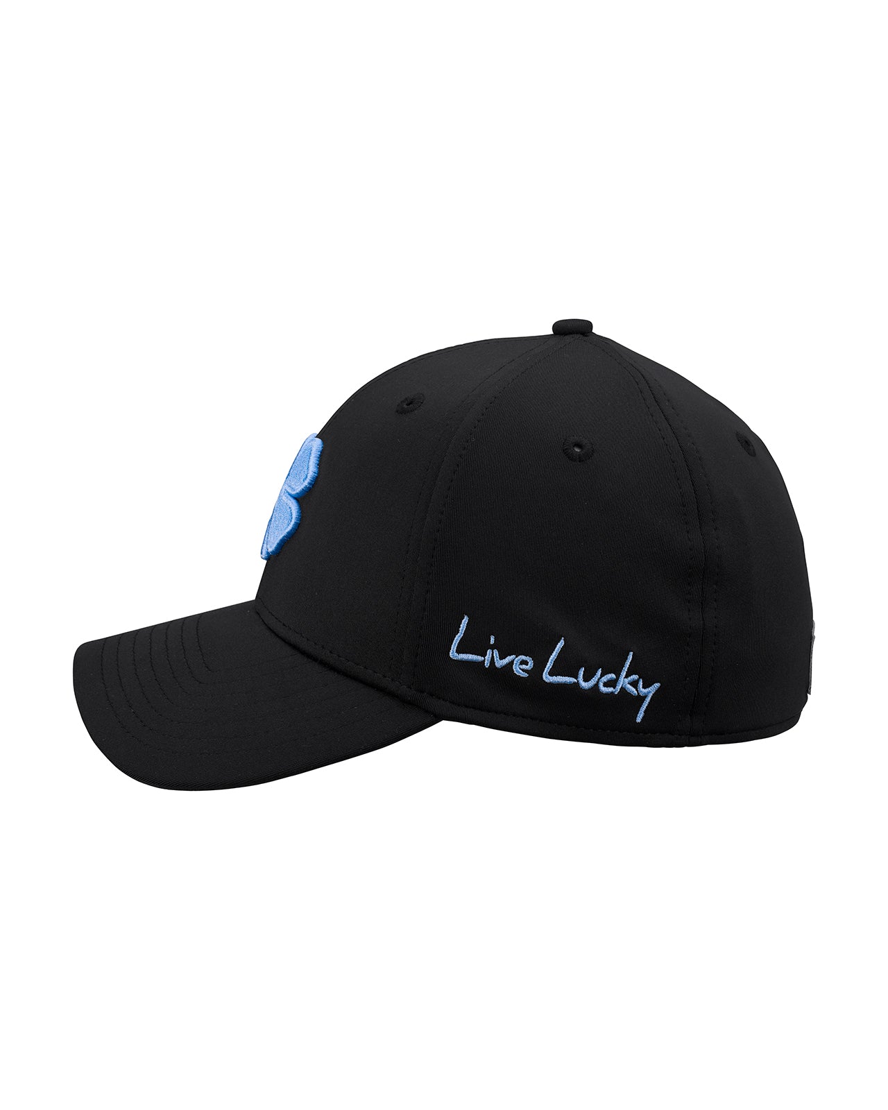 The Premium Clover 184 is our iconic black fitted hat built for both style and performance. It is crafted with moisture-wicking fabric to keep you dry and an A Flex headband that adapts for a flawless fit, delivering the all day comfort you need in a hat. Finished with our signature peri blue 3D embroidered clover and a multi colored rope detail, this fitted golf hat blends timeless design with a modern edge. It is versatile, durable, and unmistakably sharp for every outfit you pair with it.