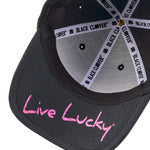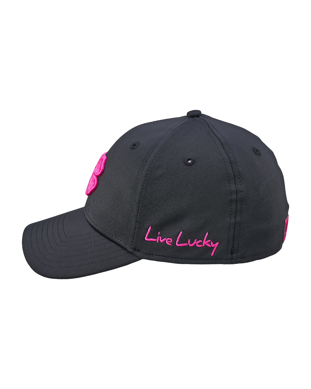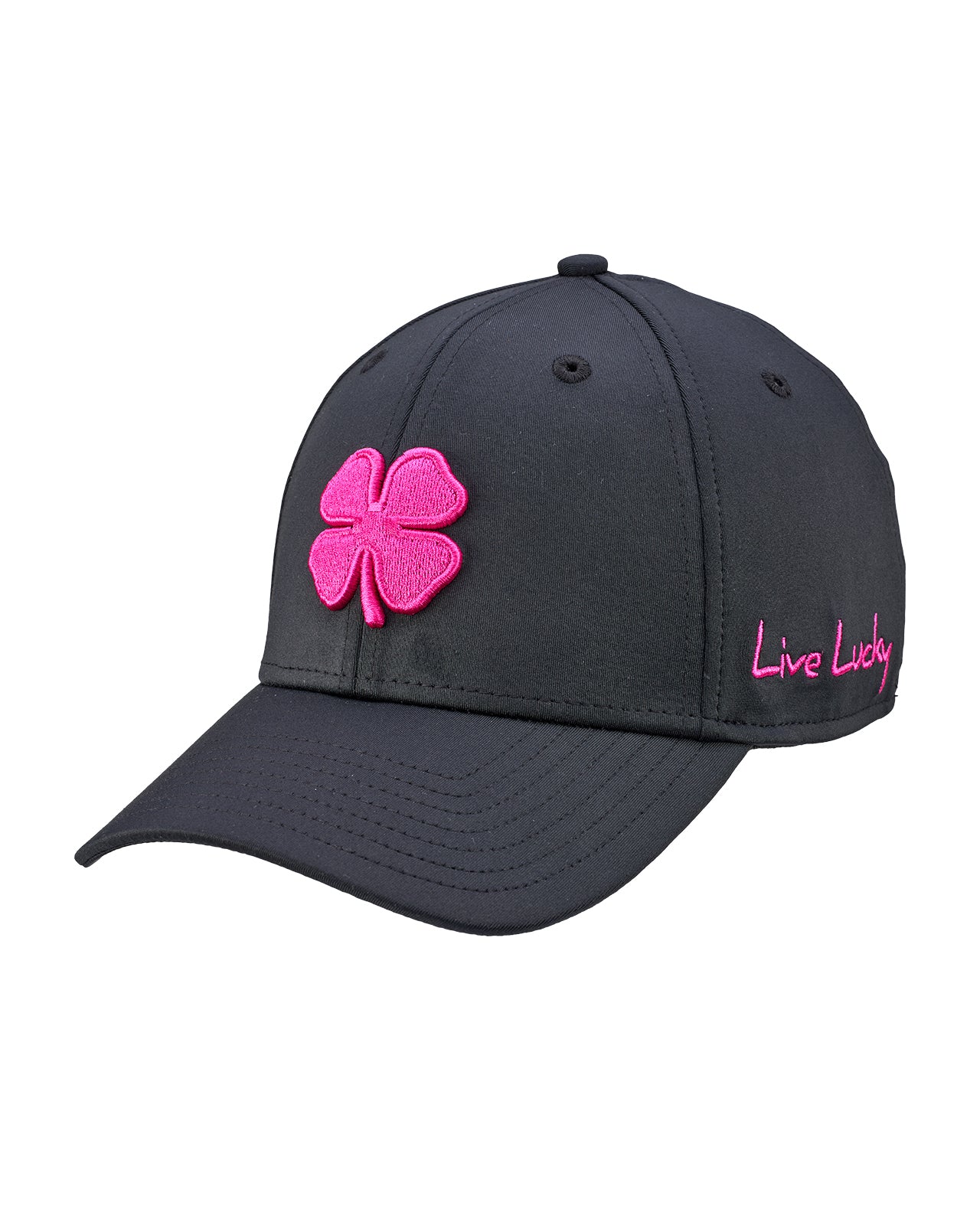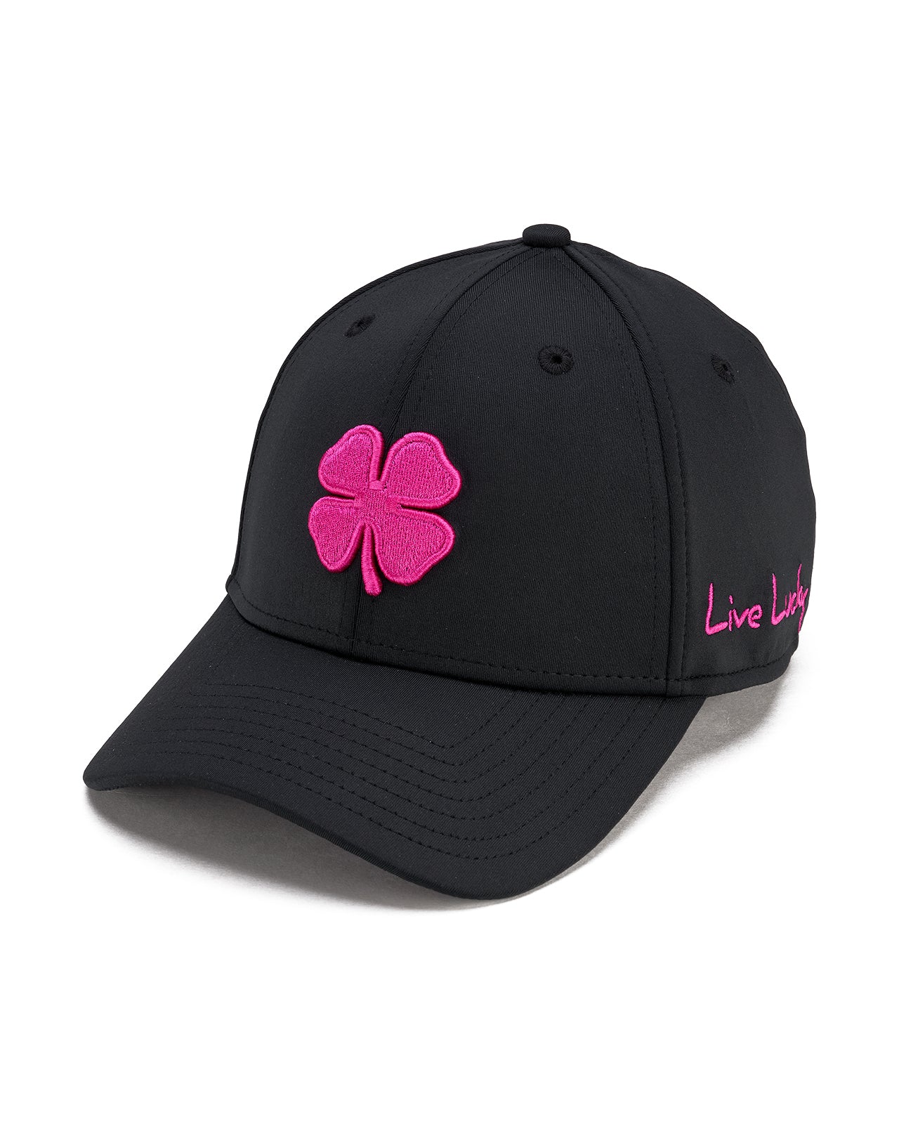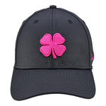 The Premium Clover 185 is our iconic black fitted hat built for both style and performance. It is crafted with moisture-wicking fabric to keep you dry and an A Flex headband that adapts for a flawless fit, delivering the all day comfort you need in a hat. Finished with our signature electric rose pink 3D embroidered clover and a multi colored rope detail, this fitted golf hat blends timeless design with a modern edge. It is versatile, durable, and unmistakably sharp for every outfit you pair with it.