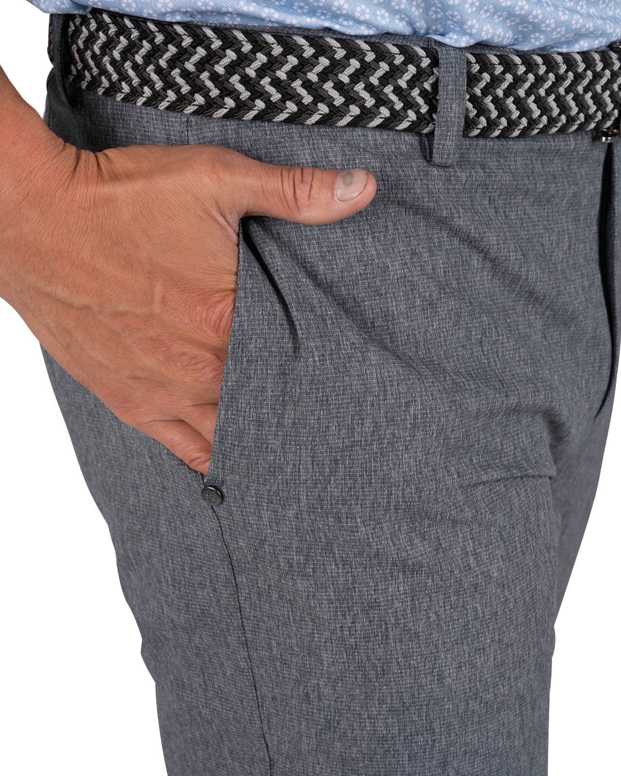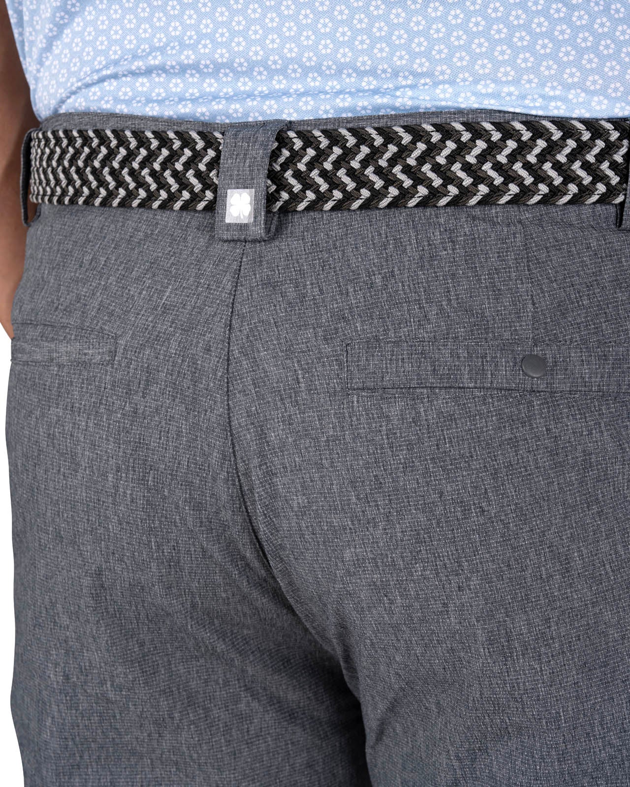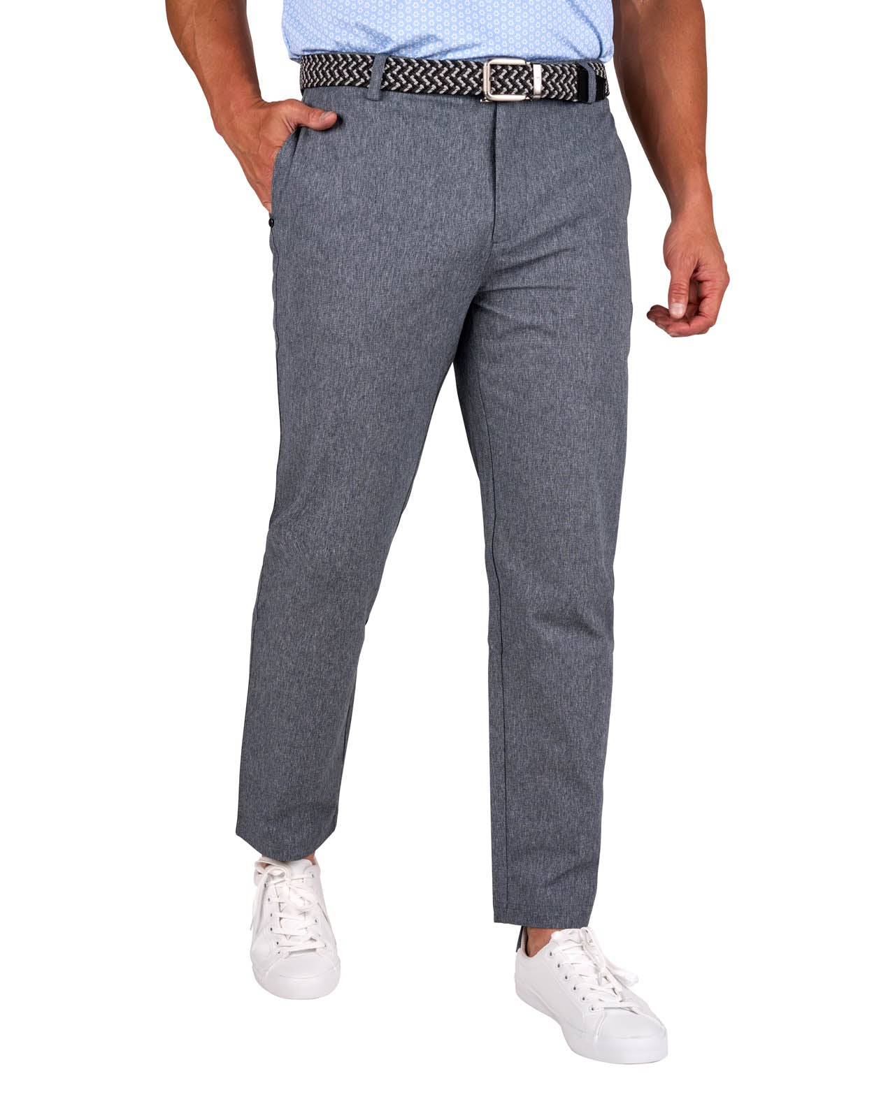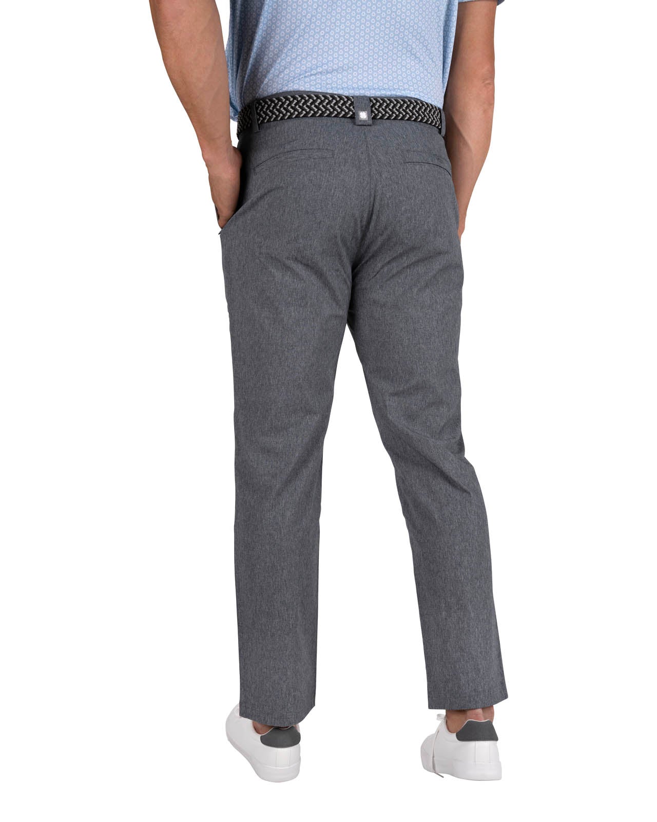 These textured stretch twill charcoal Prime pants combine style and functionality, featuring a stretch waist, moisture-wicking fabric, and breathability for all-day comfort. With low shrinkage and a sleek design, these dark grey golf pants are perfect for the golf course, the boardroom, or any occasion requiring versatile sophistication.