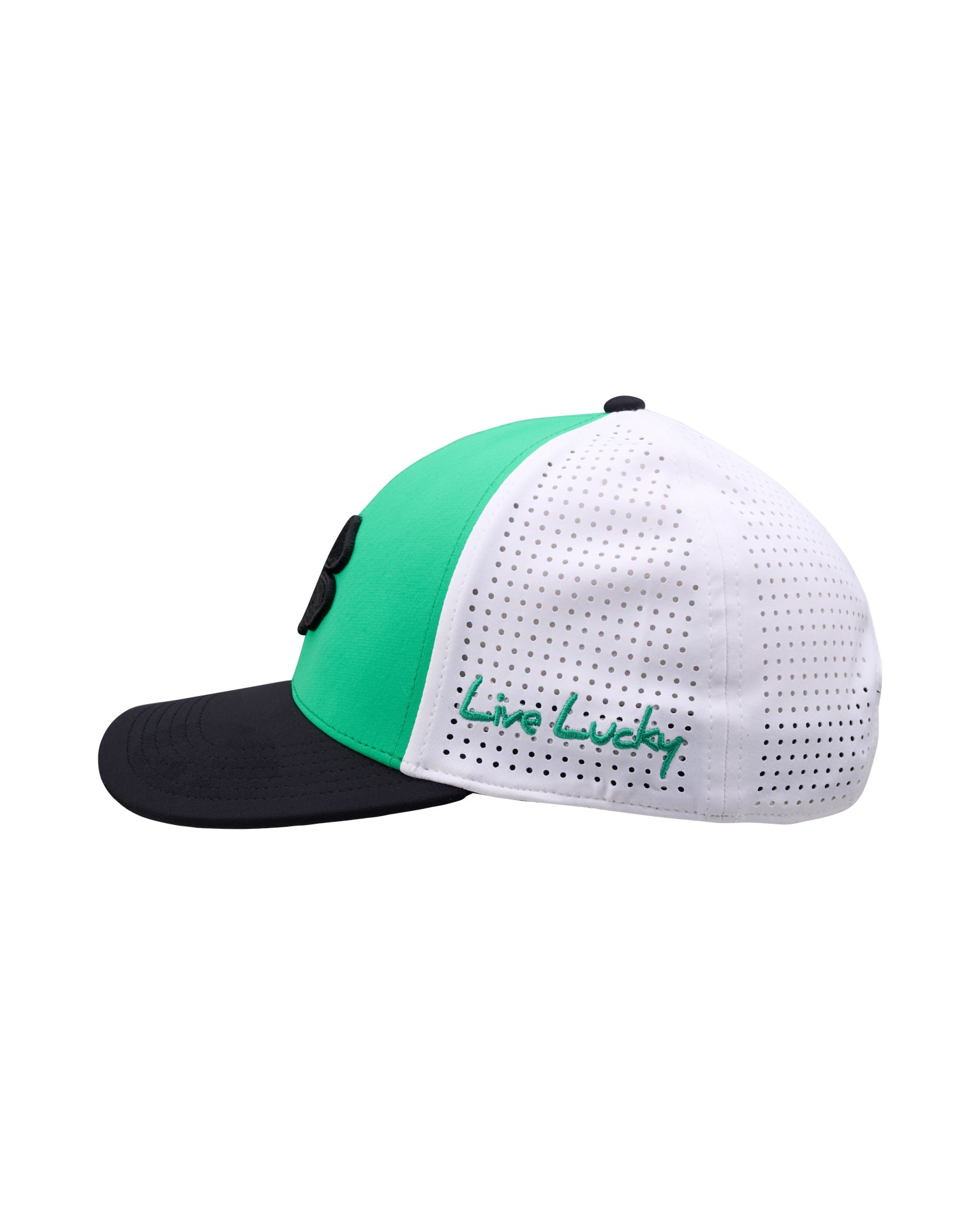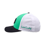The Gamer 3 in kelly green keeps things light, clean, and built to perform. This premium golf snapback features a structured crown in green, a crisp black 3D embroidered clover up front, and white laser etched perforation that keeps airflow high when the round heats up. Finished with a black brim for contrast and an adjustable snapback closure for a comfortable fit, the Gamer 3 is made for golfers who like their style confident and ready for anything.