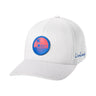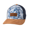 This Tropical Woods hat offers a cool and stylish look with its tropical suede front and navy mesh back. It is adjustable with a snapback closure, designed for a comfortable fit. The hat is made of performance polyester for breathability and durability, and features a printed suede patch for added style.