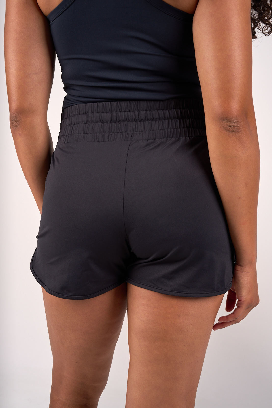 Stay cool and dry in the Livie Lou Shorts in black, designed for performance, comfort, and effortless summer style. Made from a soft nylon spandex blend with water repellent stretch, these women’s black athletic shorts offer shape retention and breathable comfort no matter where the day takes you. Whether you're running, training, or just keeping it casual, these lightweight gym shorts deliver the flexibility and feel you need to move freely and confidently.