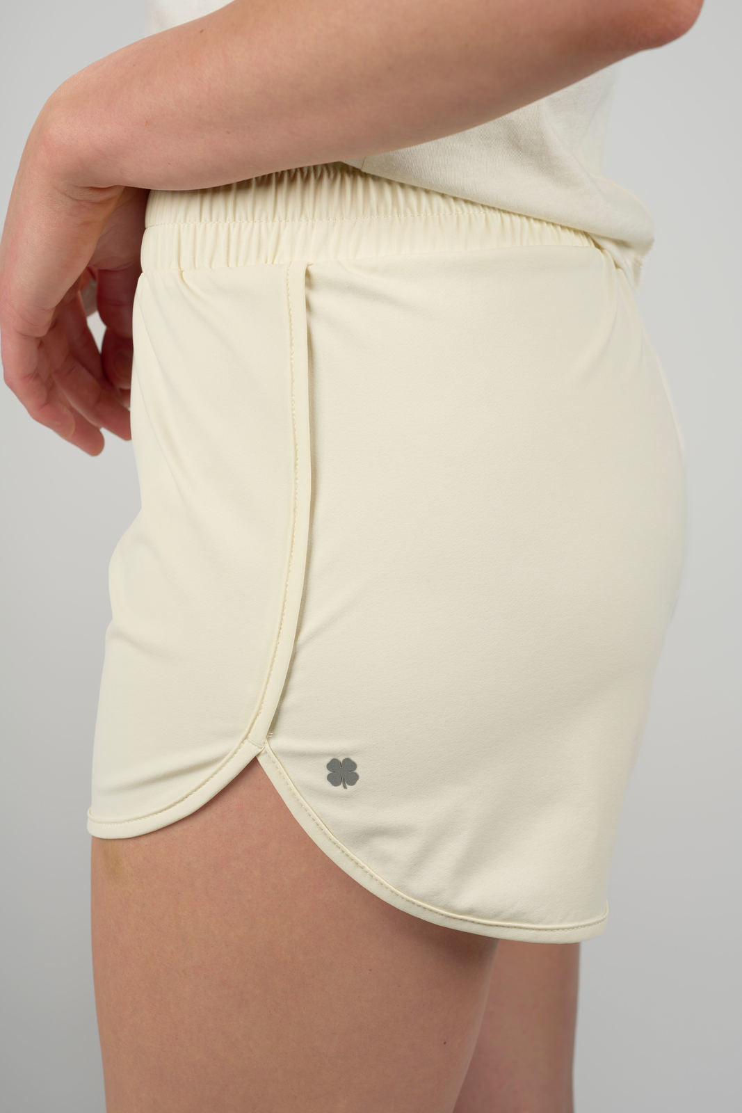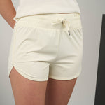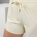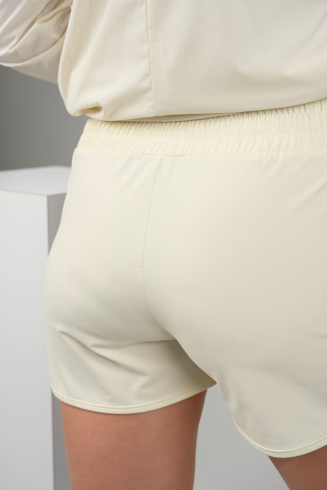 Stay cool and dry in the Livie Lou Shorts in vanilla, designed for performance, comfort, and effortless summer style. Made from a soft nylon spandex blend with water repellent stretch, these women’s cream athletic shorts offer shape retention and breathable comfort no matter where the day takes you. Whether you're running, training, or just keeping it casual, these lightweight gym shorts deliver the flexibility and feel you need to move freely and confidently.