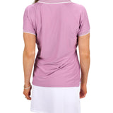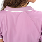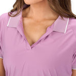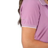 Introducing the Aria Polo, where sleek design meets ultimate comfort. This women’s polo features a solid cosmic pink accented with white piping on the collar and cuffs for a polished look. With a chic open V-neck and crafted from breathable performance mesh stretch, it’s super soft and perfect for any occasion.