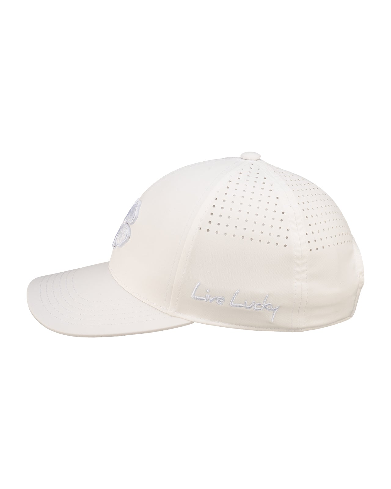 The BC Tonal 1 is a sleek solid white hat with an adjustable snapback and laser-cut perforation on the back for ultimate breathability. Featuring a 3D white clover on the front, it's perfect for the golf course or as a versatile addition to your everyday outfits, blending style and comfort effortlessly.