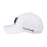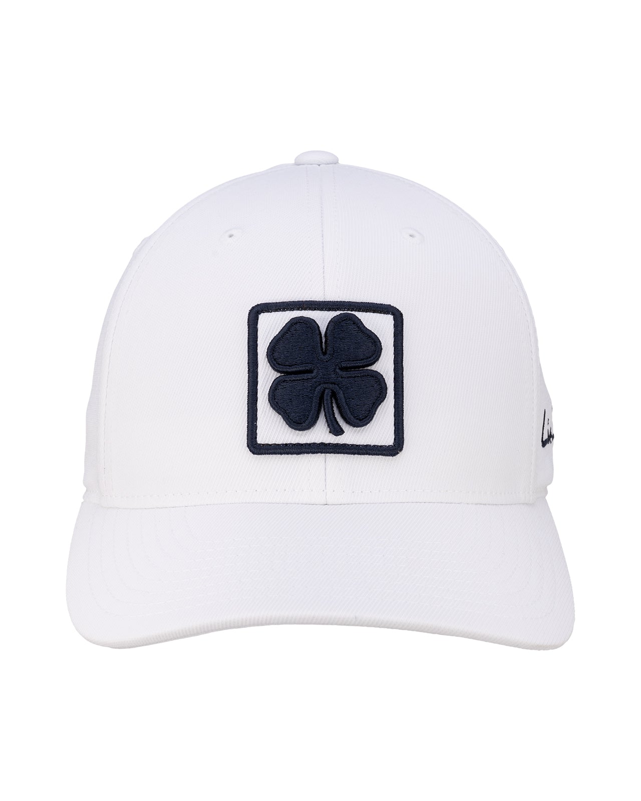 Our Boxed in Luck 6 is a stylish six-panel white hat with an adjustable snapback. Featuring a contrasting navy blue 3D embroidered clover framed inside an navy embroidered box, this sleek design adds subtle sophistication. Perfect for any lifestyle, it’s your go-to hat for a night on the town or casual outings.