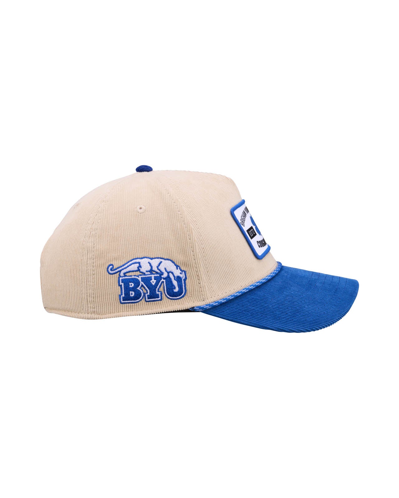 Celebrate Cougar tradition with the Brigham Young Legacy Hat — a retro cream and navy snapback made for fans who live for game day heritage. Crafted from premium corduroy and finished with cream rope and an HD clover patch, this BYU snapback blends vintage style with modern comfort, making it a go-to from LaVell Edwards Stadium to everyday wear.