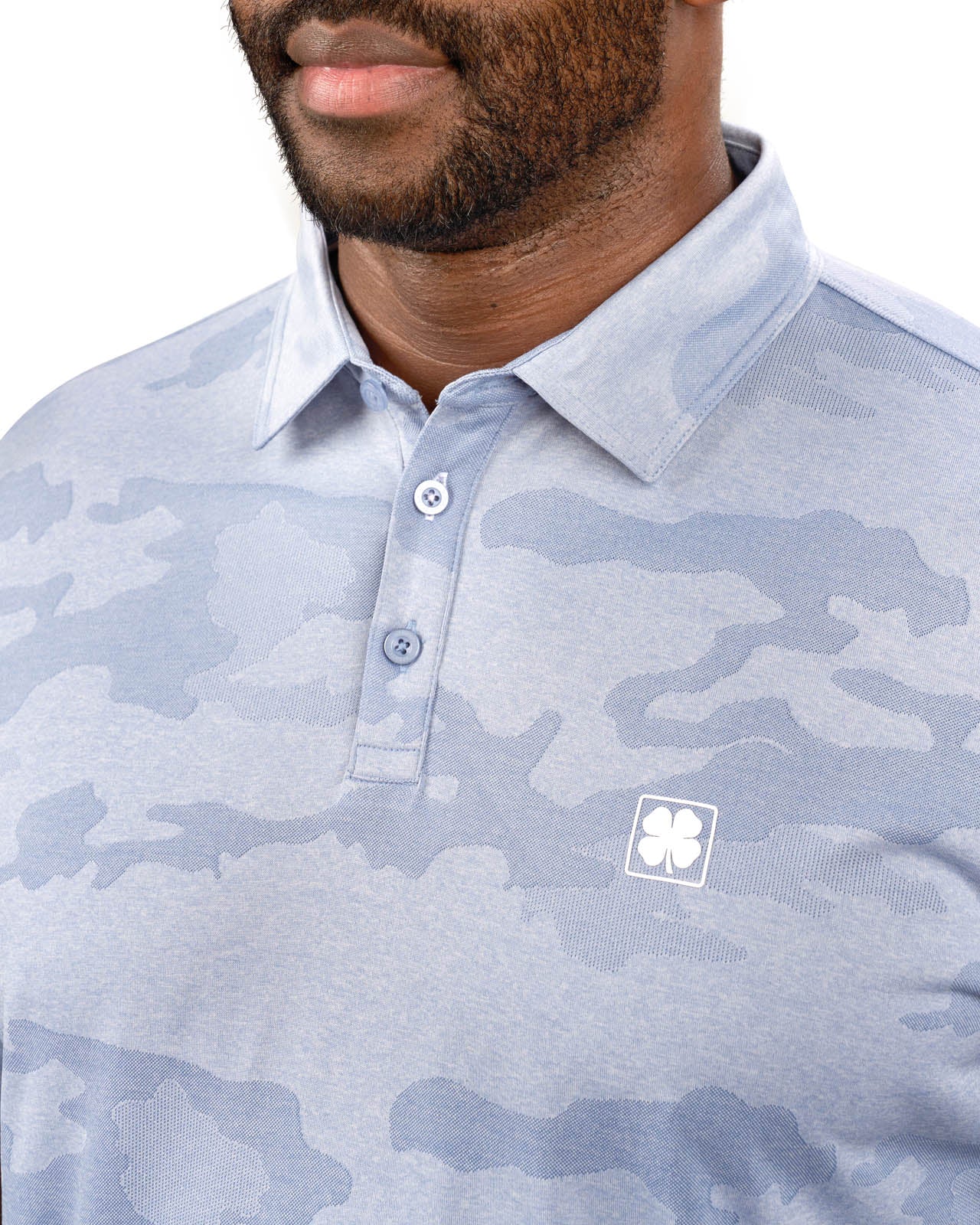Our Camo polo in black features a subtle camo pattern in shades of blue. Crafted from a poly jersey stretch, it offers breathability, moisture-wicking capabilities, and 4-way stretch. With low shrinkage and shape retention technology, it’s your go-to for all-day comfort and style.