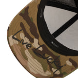 Show your American pride with the Clover Nation 25 hat. This versatile, adjustable snapback features a sleek camo and black design with our black embroidered Clover Nation flag. Made with advanced cool & dry fabric and innovative Flexfit® Technology, it offers ultimate comfort and patriotic style.