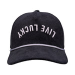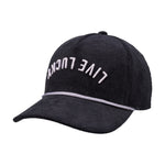 Top off your look with this vintage-inspired snapback hat. Featuring an adjustable fit, our Upside Down Luck 2 boasts a black crown and brim with bold 3D embroidery. The design showcases our motto 'Live Lucky' in an upside down style, offering a perfect blend of classic style and modern edge.