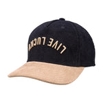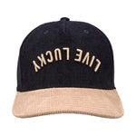 Top off your look with this vintage-inspired snapback hat. Featuring an adjustable fit, our Upside Down Luck 3 boasts a black crown with a contrasting light brown brim and bold 3D embroidery. The design showcases our motto 'Live Lucky' in an upside down style, offering a perfect blend of classic style and modern edge.
