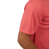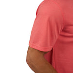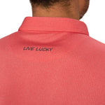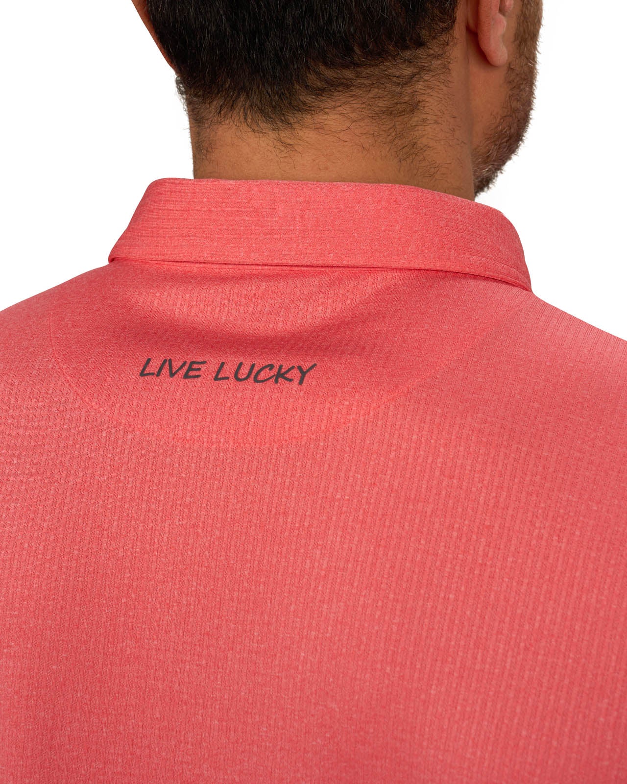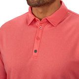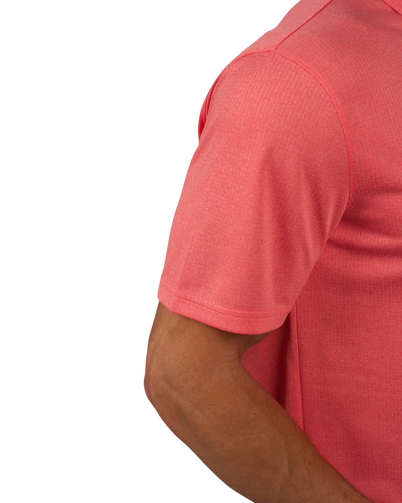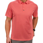 Introducing the Davis, a versatile essential for any wardrobe. Crafted from a poly spandex blend, this solid sunset orange jacquard textured polo is breathable, wrinkle-resistant, and moisture-wicking. Perfect for the golf course or the boardroom, it combines comfort and effortless style.