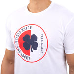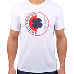 Level up your casual wear with our white Echo 1 graphic tee. Crafted from a cotton/poly blend, this classic white tee is the epitome of comfort and features our signature clover in black with red accents. A versatile addition to any wardrobe, pair it with athletic shorts for a workout, with jeans for a casual style, or dress it up with slacks and a blazer for a more polished look. Makes an ideal gift!