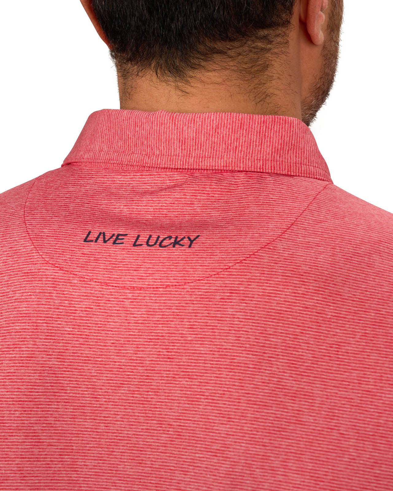Elevate your wardrobe with our red Greyson polo. Crafted from a soft tencel and syntrel blend, it features subtle horizontal pinstripes, 4-way stretch, and high-moisture transport. With shape retention and breathability, it’s perfect for the golf course or a night out, keeping you cool and stylish.